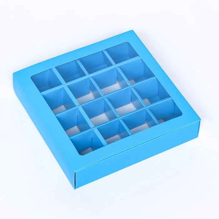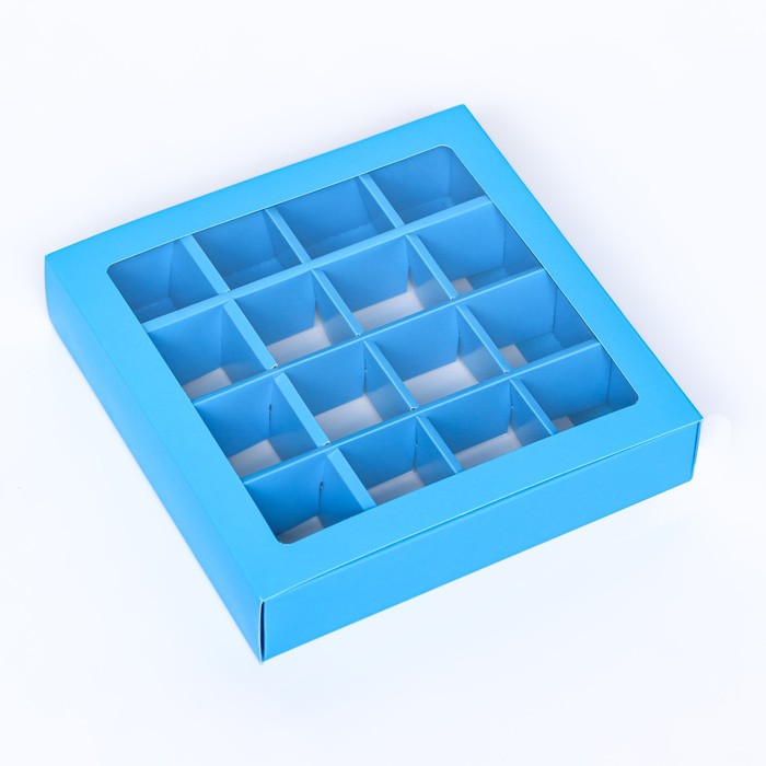 Коробка для конфет, 16 шт., голубая, 17.7×17.7×3.8 см — Характеристики