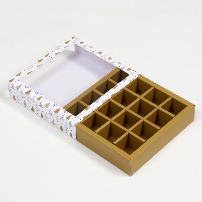 Коробка для конфет на 16 штук - идеальное упаковочное решение для ваших любимых сладостей. Элегантный и компактный дизайн этой коробки делает её идеальным подарком или дополнением к любому особенному моменту. Вмещает 16 вкусных конфет, предлагая их вам в стильной упаковке, готовой к подарку.