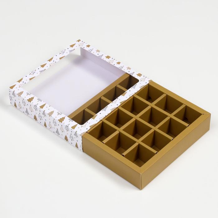 Коробка для конфет 16 шт. «Новогодние ёлки» подарочная новогодняя упаковка, 17.7×17.7×3.8 см — Характеристики