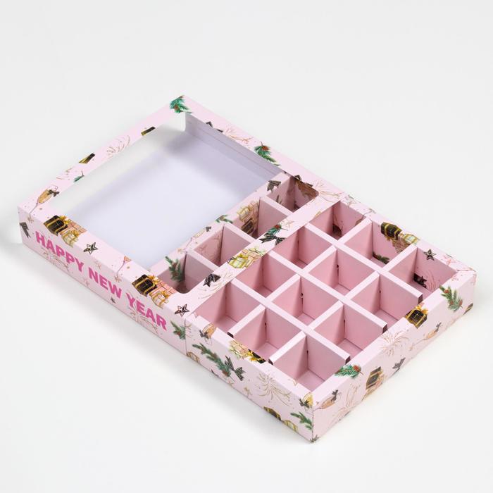 Коробка под 16 конфет "Новогодняя" размером 17,7х17,7х3,8 см - это прекрасный выбор для упаковки сладостей к празднику. Она выполнена в ярких новогодних цветах, что создает атмосферу праздника и волшебства.
