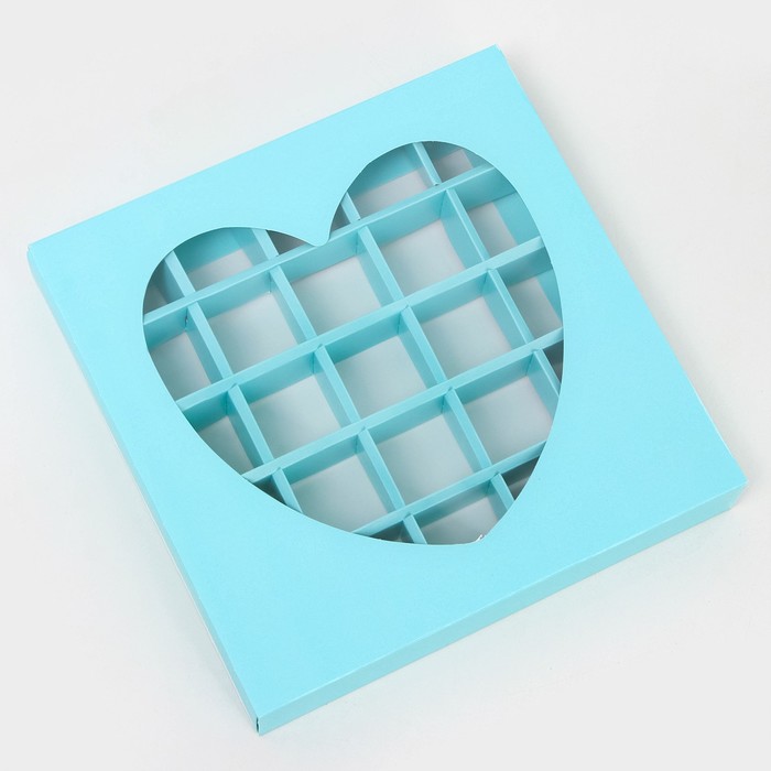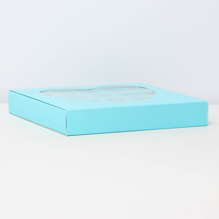 Коробка для конфет 25 шт., голубая, 22×22×3.5 см
