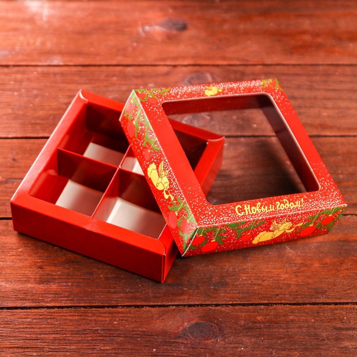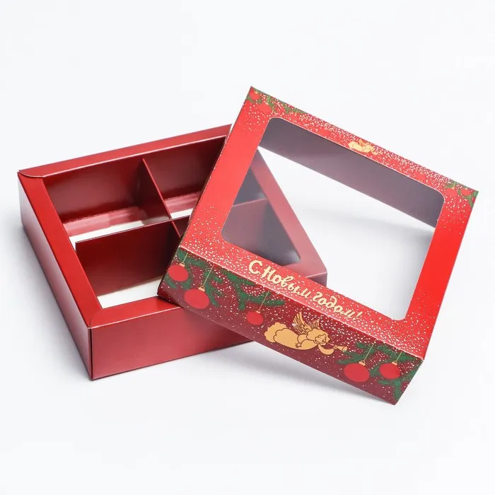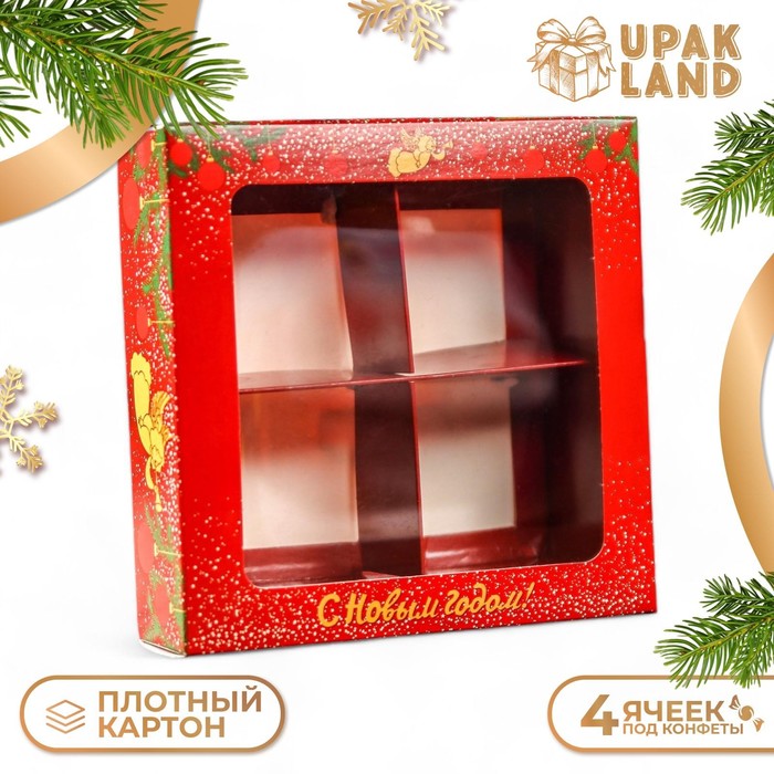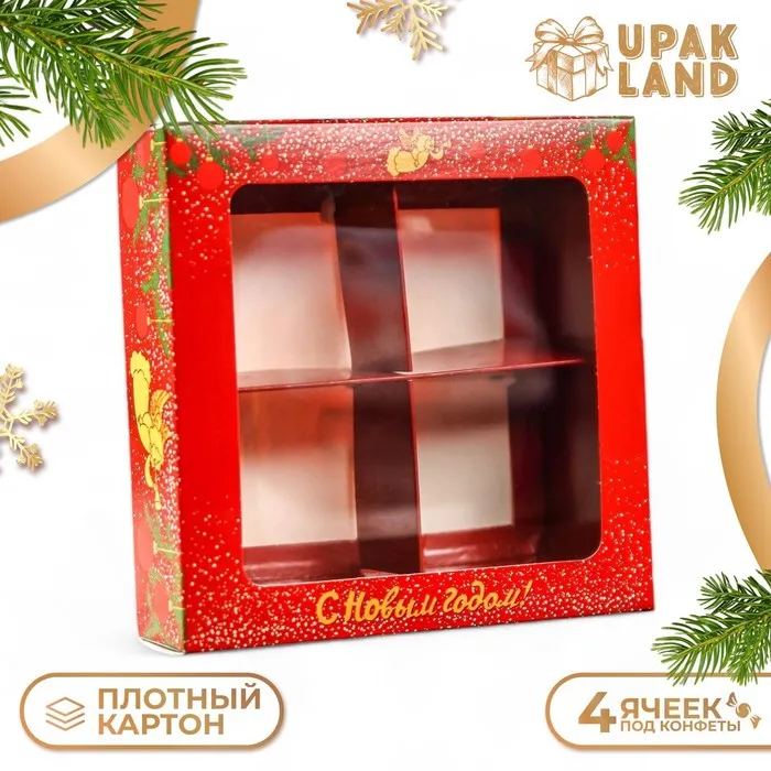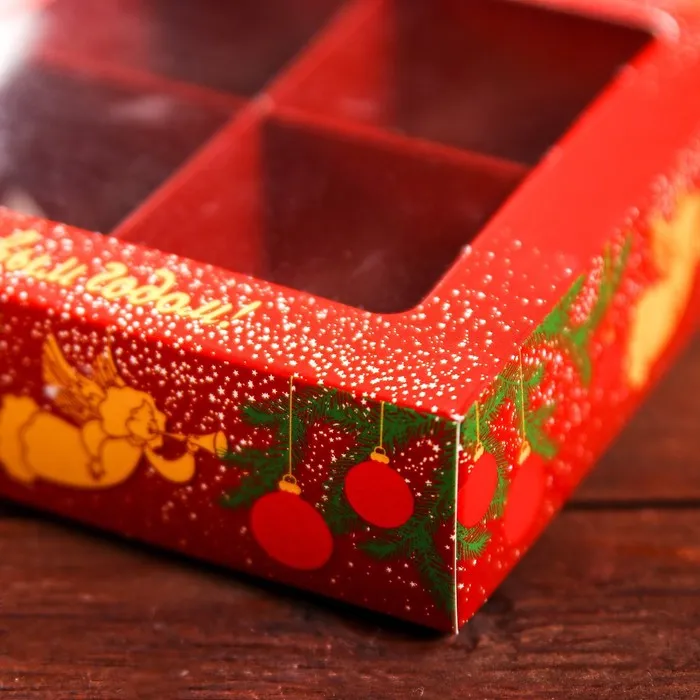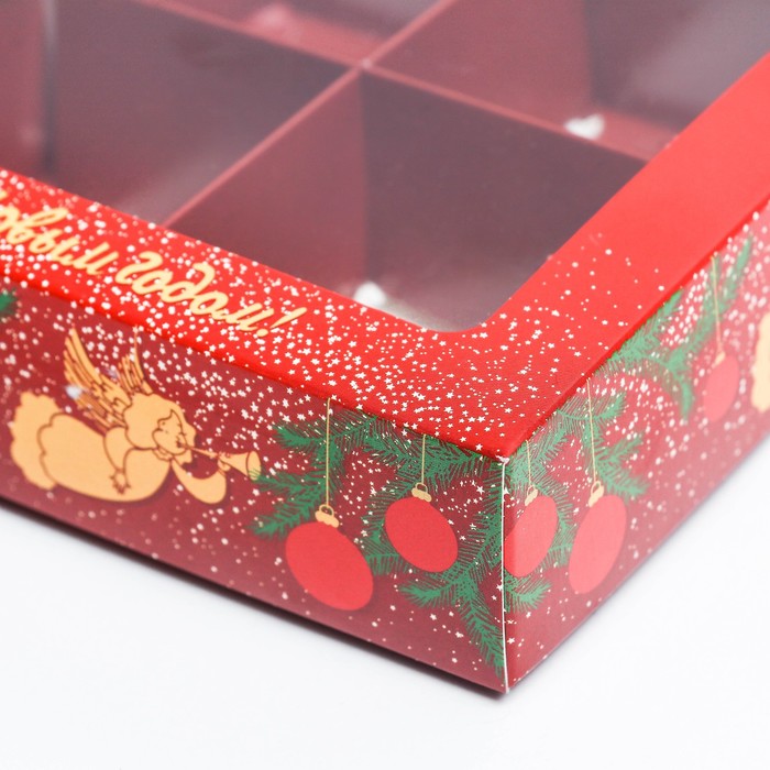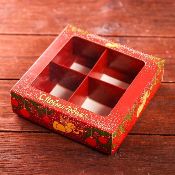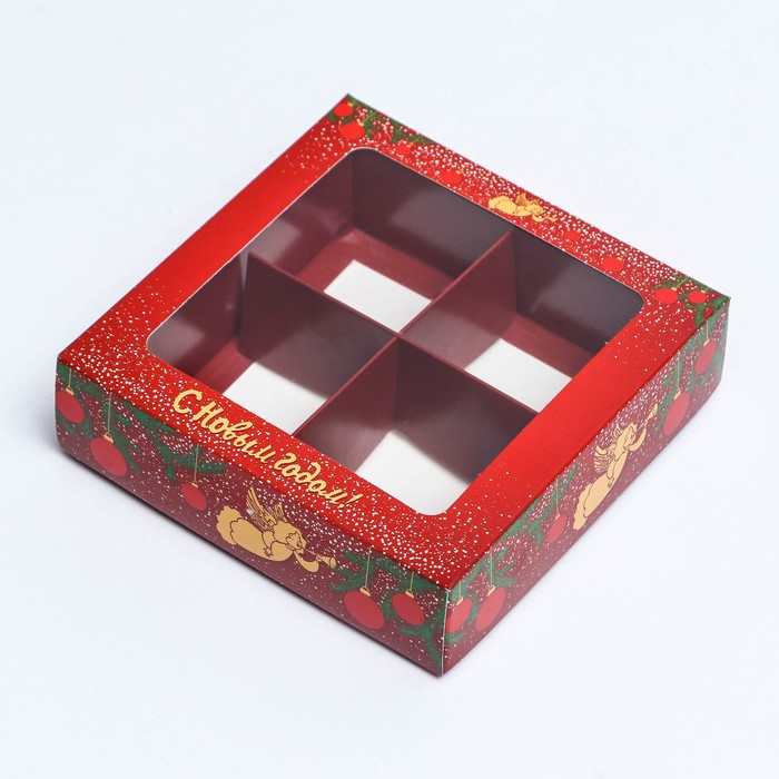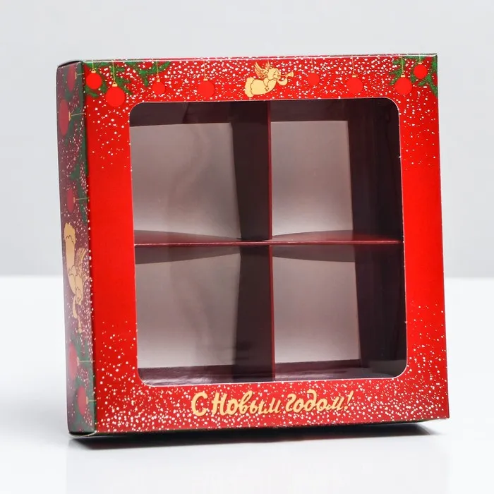 Коробка для конфет 4 шт. «Ангелок на Новый год» подарочная новогодняя упаковка, 12.6×12.6×3.5 см — Характеристики