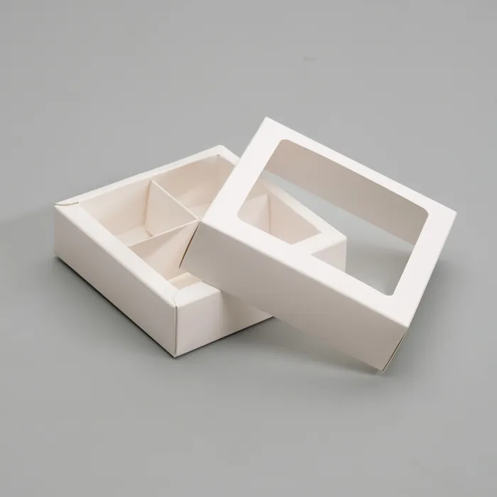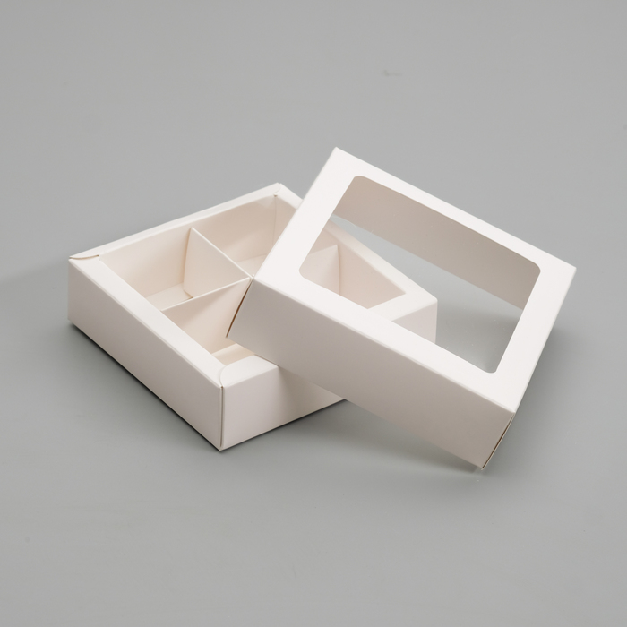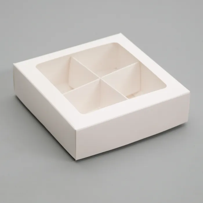 Коробка для конфет 4 шт., с окном, белая 12.5×12.5×3.5 см — Характеристики