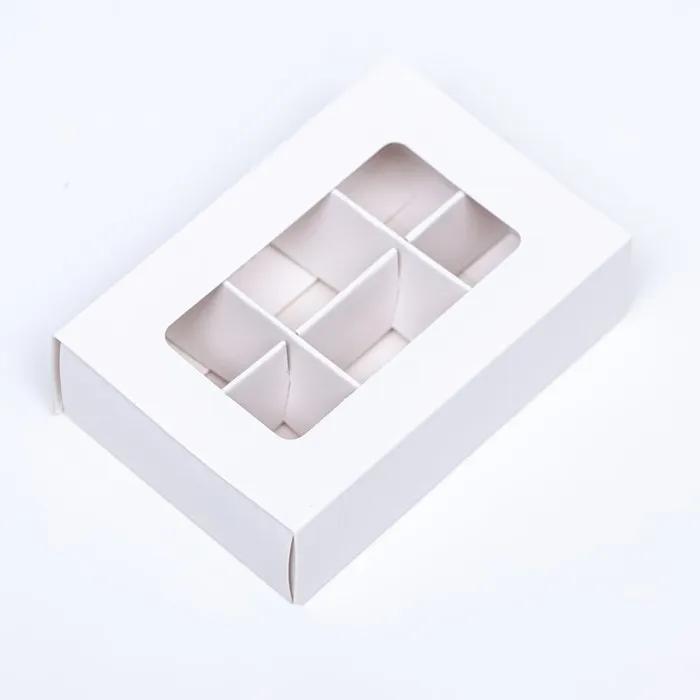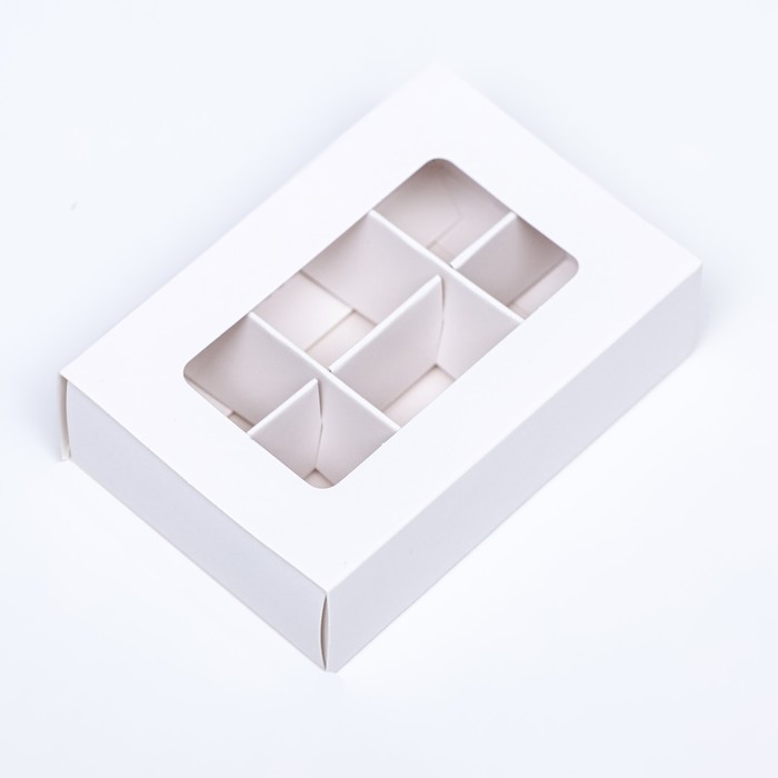 Коробка для конфет 6 штук, 8.7×5.8×2.5 см, Тонкие разделители, белый — Характеристики