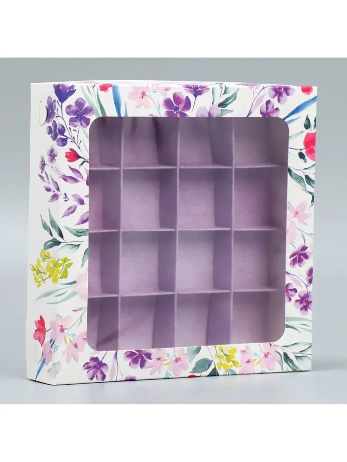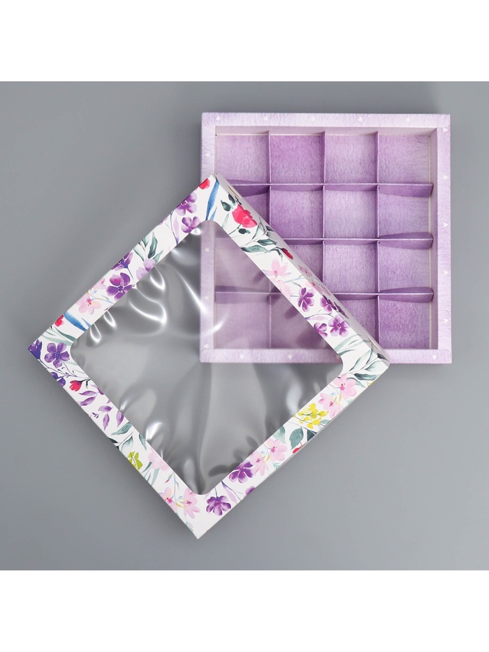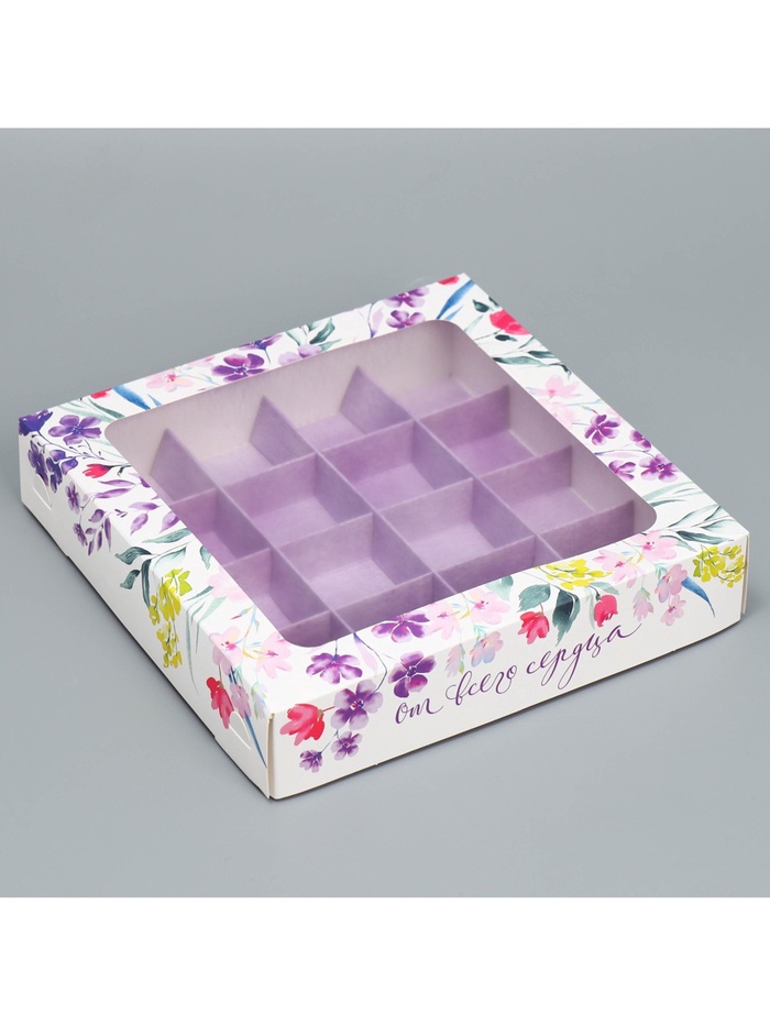 Коробка для конфет, кондитерская упаковка, 16 ячеек «От всего сердца», 18.9 х 18.9 х 3.8 см — Характеристики