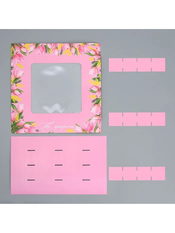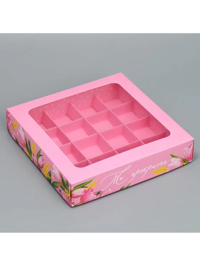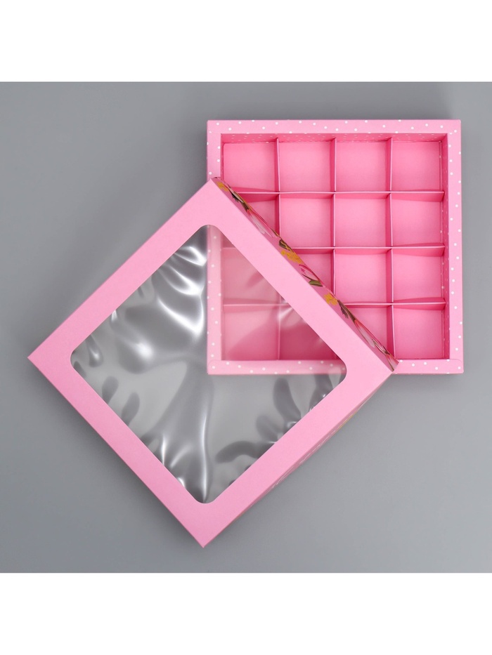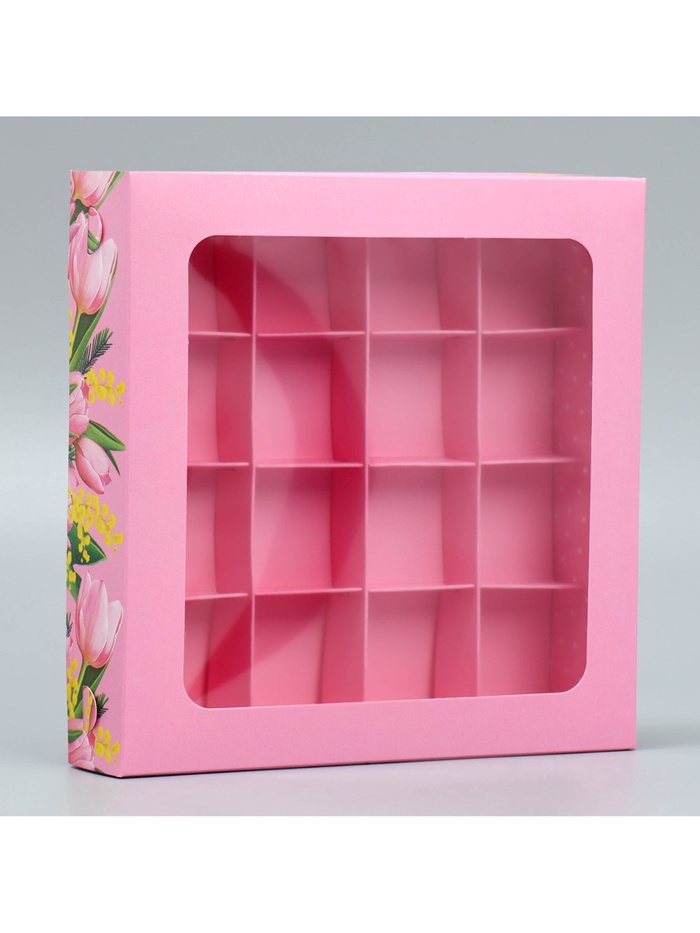 Коробка для конфет, кондитерская упаковка, 16 ячеек «От всего сердца», 18.9×18.9×3.8 см — Характеристики