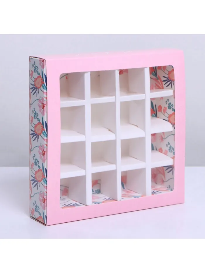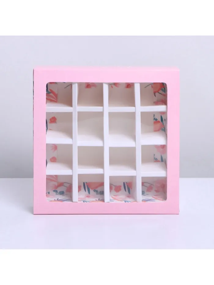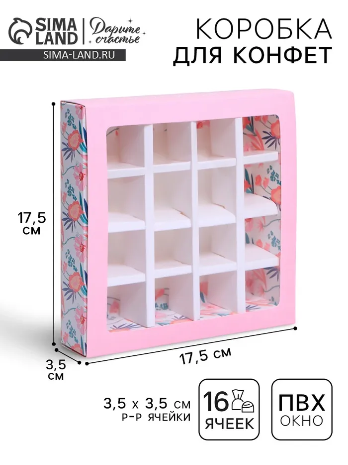 Коробка для конфет, кондитерская упаковка, 16 ячеек, «Расцветай» 17.7 х 17.7 х 3.8 см — Характеристики