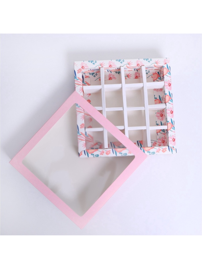 Коробка для конфет, кондитерская упаковка, 16 ячеек, «Расцветай» 17.7 х 17.7 х 3.8 см — Характеристики