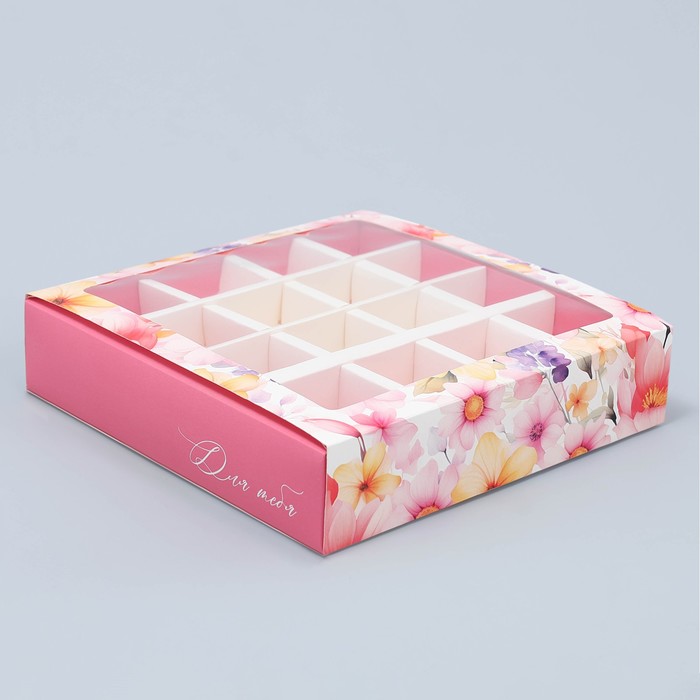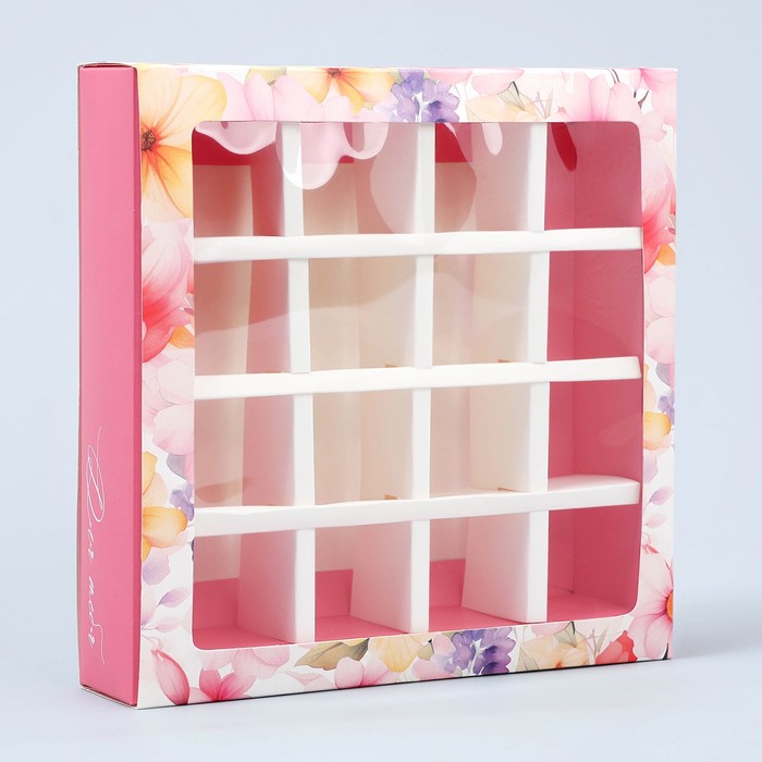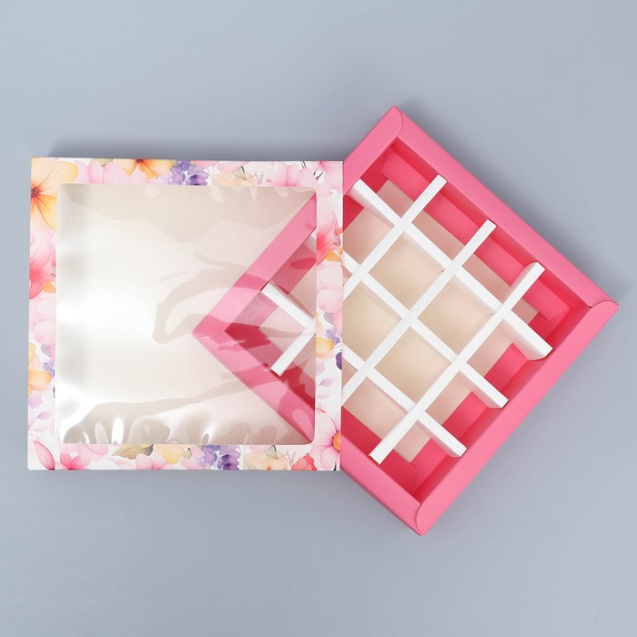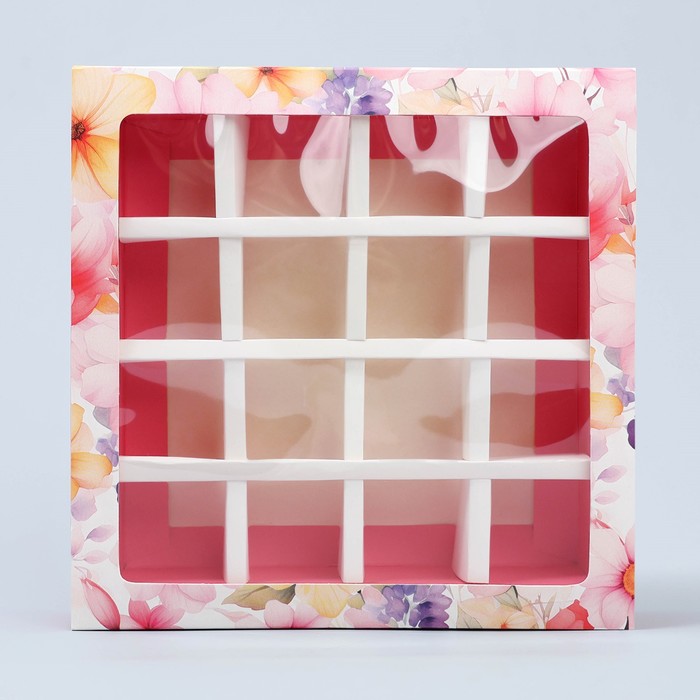 Коробка для конфет, кондитерская упаковка, 16 ячеек, «Цветы» 17.7 х 17.7 х 3.8 см