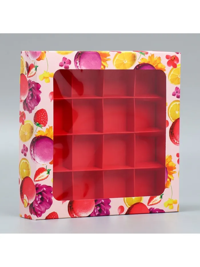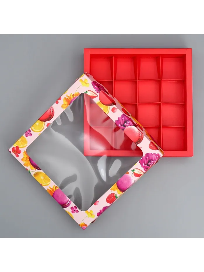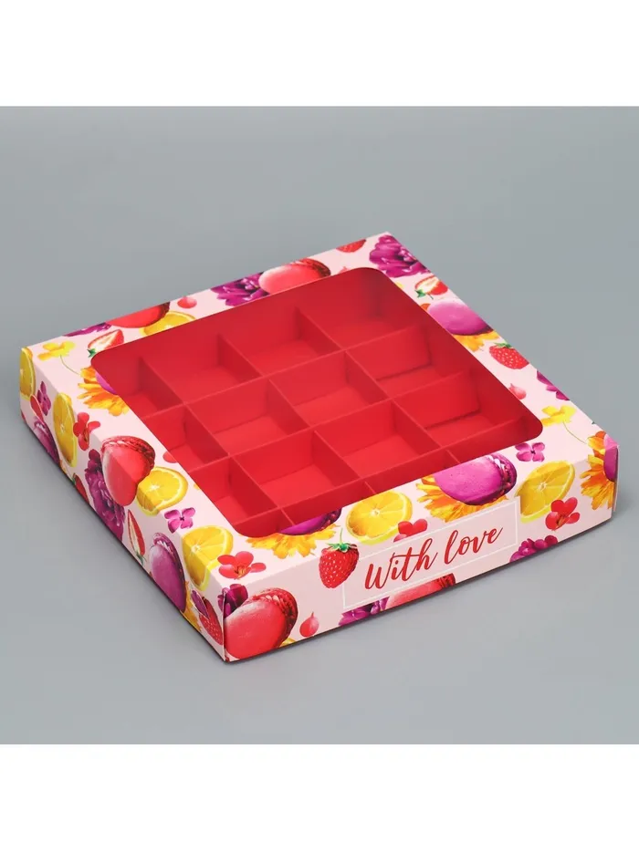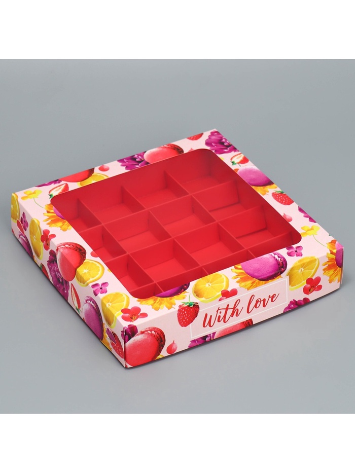 Коробка для конфет, кондитерская упаковка, 16 ячеек With love, 18.9 х 18.9 х 3.8 см — Характеристики