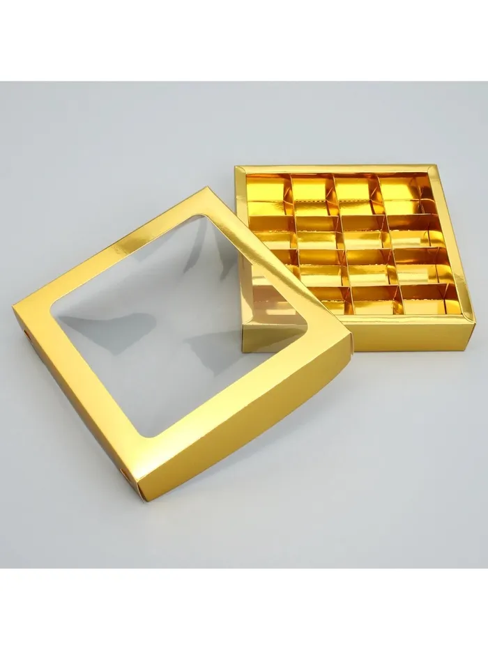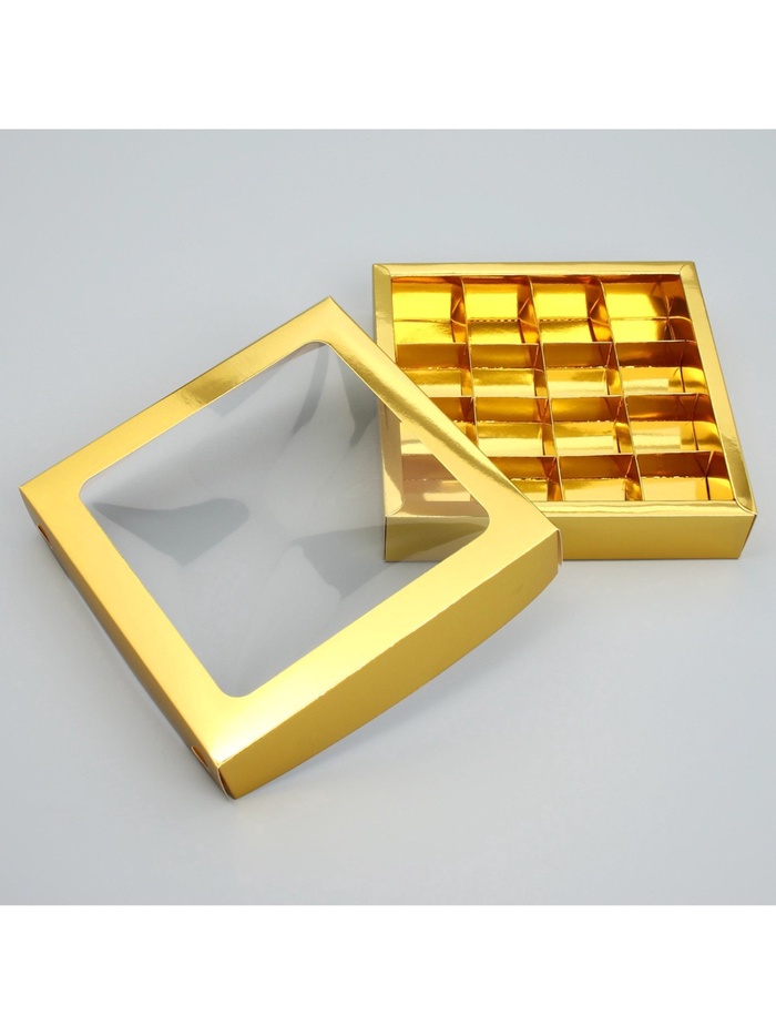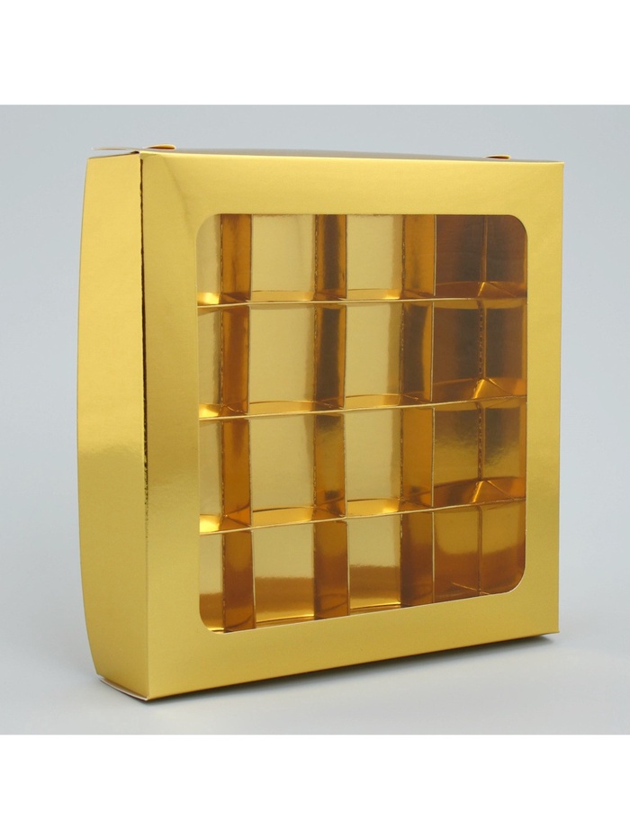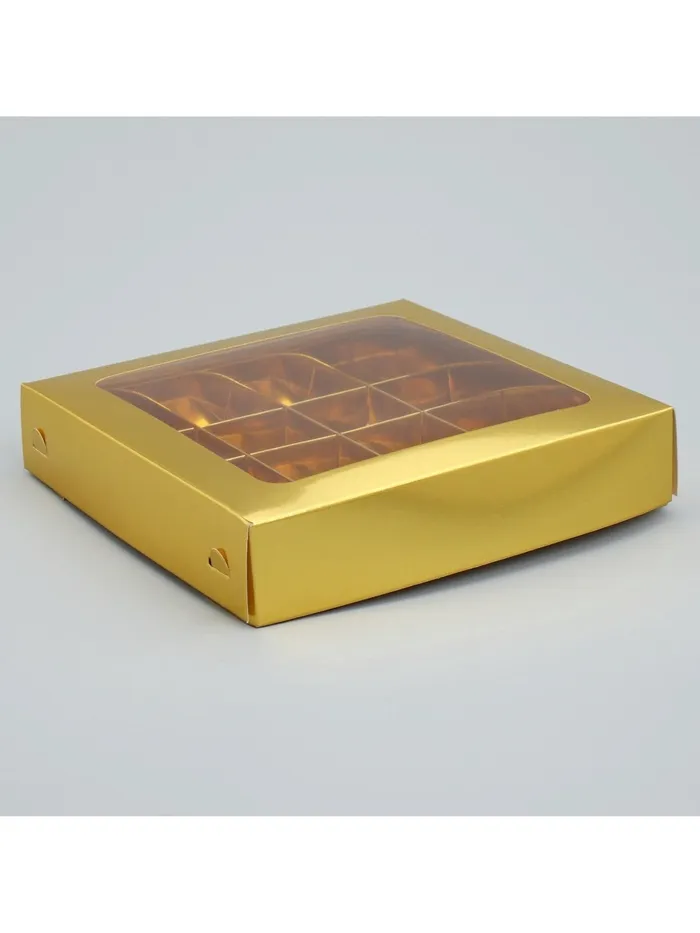 Коробка для конфет, кондитерская упаковка, 16 ячеек «Золотистая», 18.9 х 18.9 х 3.8 см