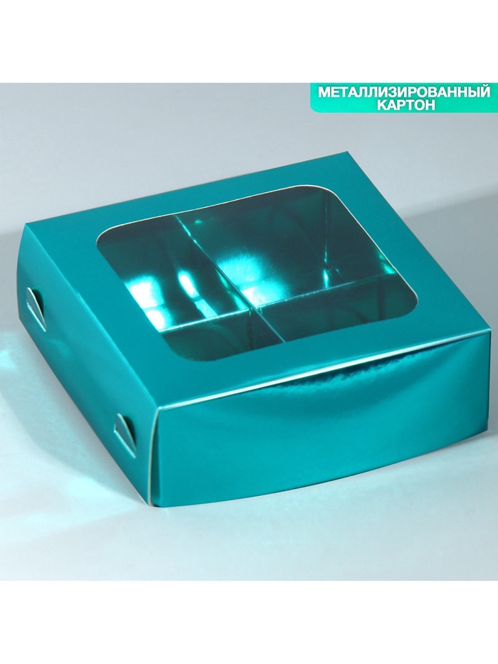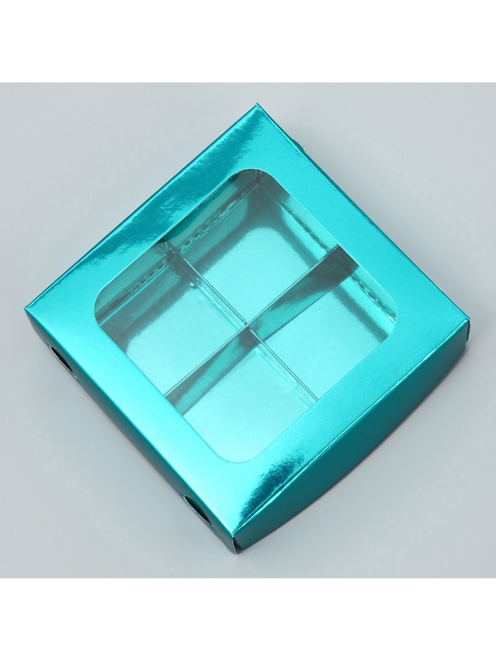 Коробка для конфет, кондитерская упаковка, 4 ячейки, «Голубая», 10.5 х 10.5 х 3.5 см — Характеристики