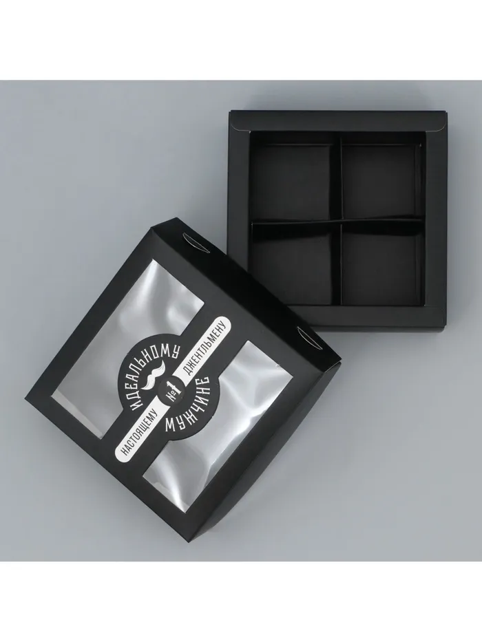 Коробка для конфет, кондитерская упаковка, 4 ячейки, «Настоящему мужчине», 10.5×10.5×3.5 см — Характеристики