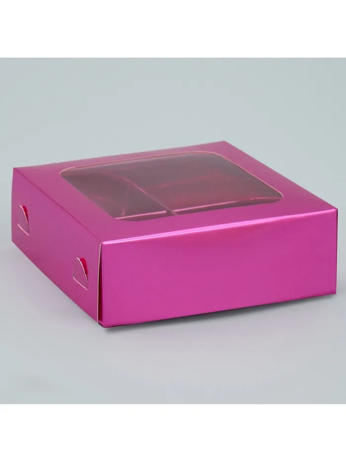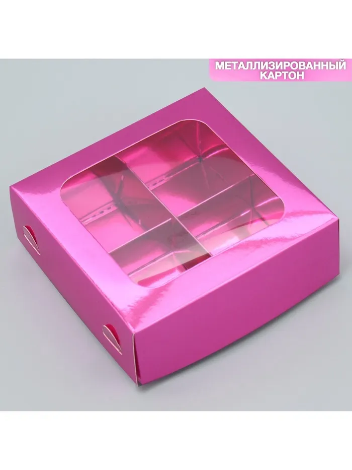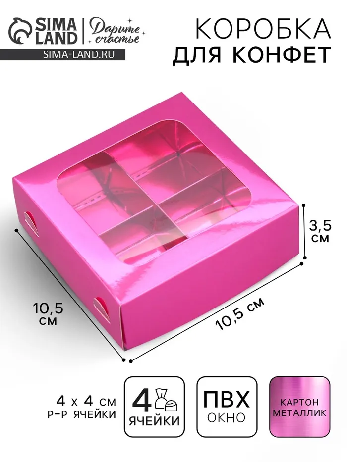 Коробка для конфет, кондитерская упаковка, 4 ячейки, «Розовая», 10.5 х 10.5 х 3.5 см — Характеристики