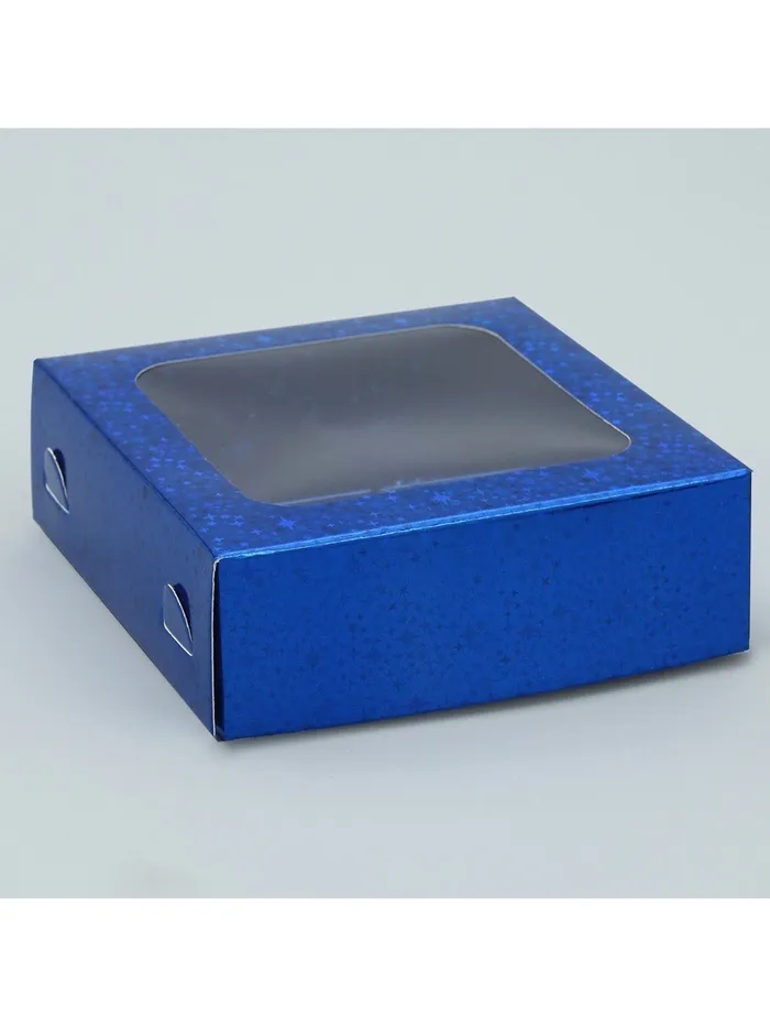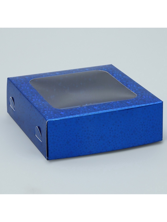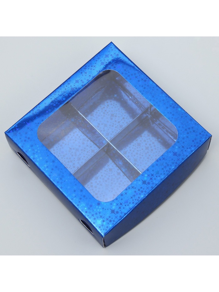 Коробка для конфет, кондитерская упаковка, 4 ячейки, «Синие звёздочки», 10.5 х 10.5 х 3.5 см — Характеристики