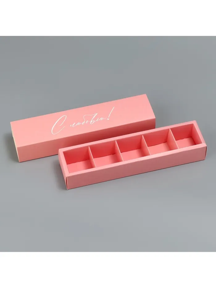 Коробка для конфет, кондитерская упаковка, 5 ячеек, «С любовью!», 5 х 21 х 3.3 см — Характеристики