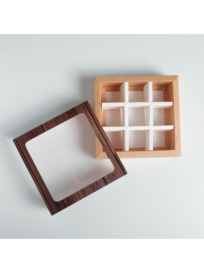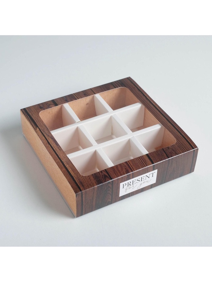 Коробка для конфет, кондитерская упаковка, 9 ячеек, «Дерево» 14.5 х 14.5 х 3.5 см — Характеристики