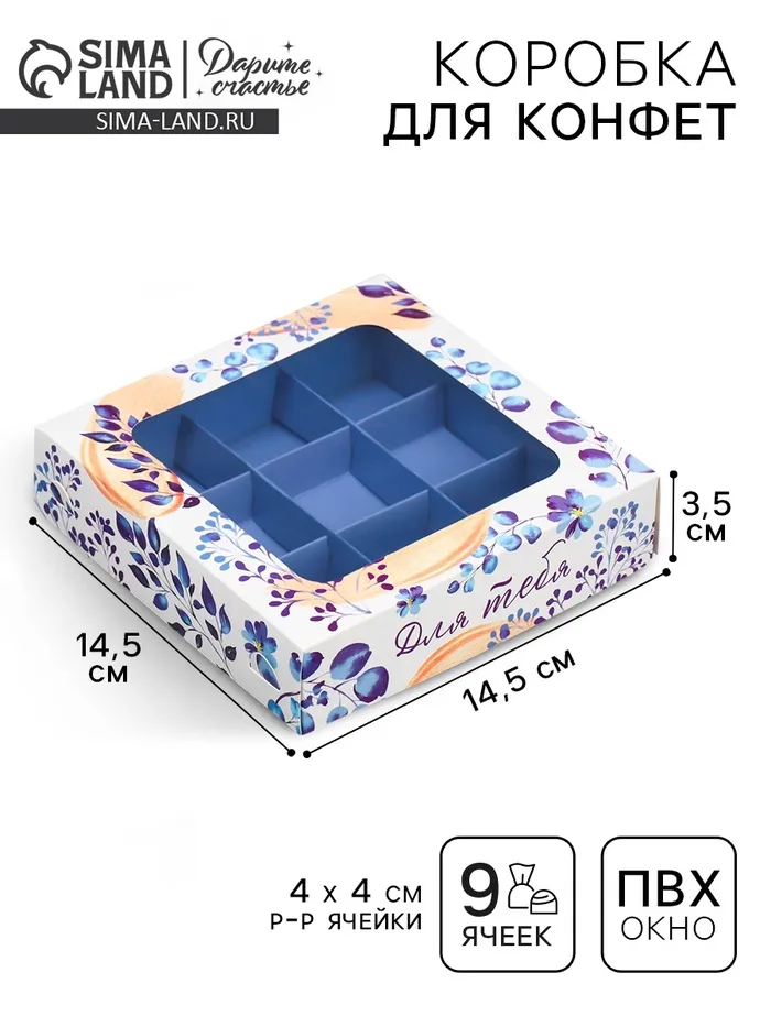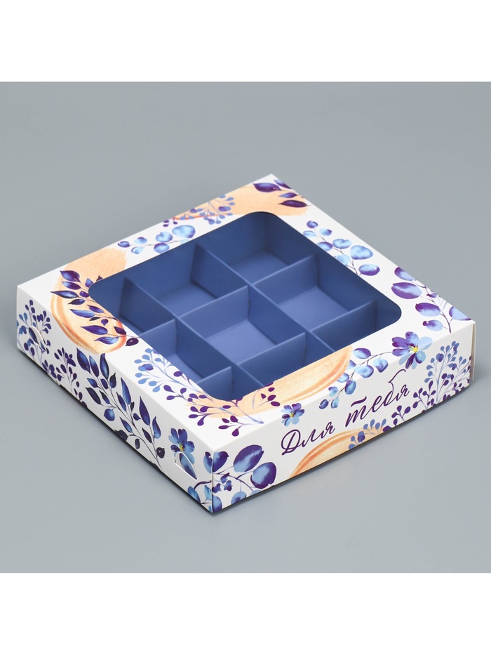 Коробка для конфет, кондитерская упаковка, 9 ячеек, «Для тебя», 14.7 х 14.7 х 3.5 см — Характеристики