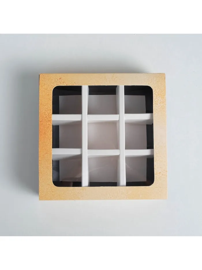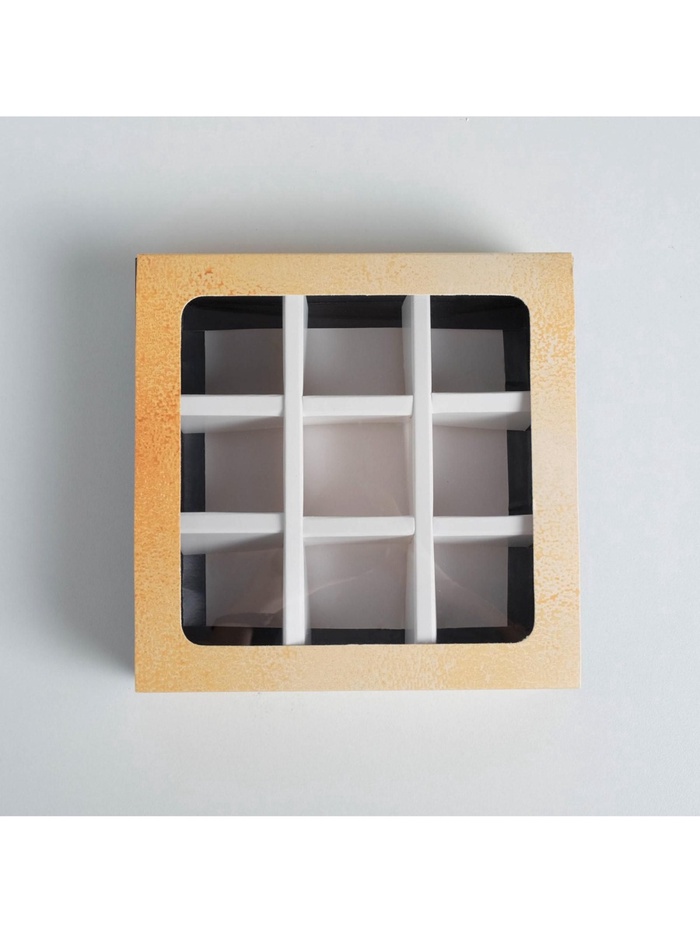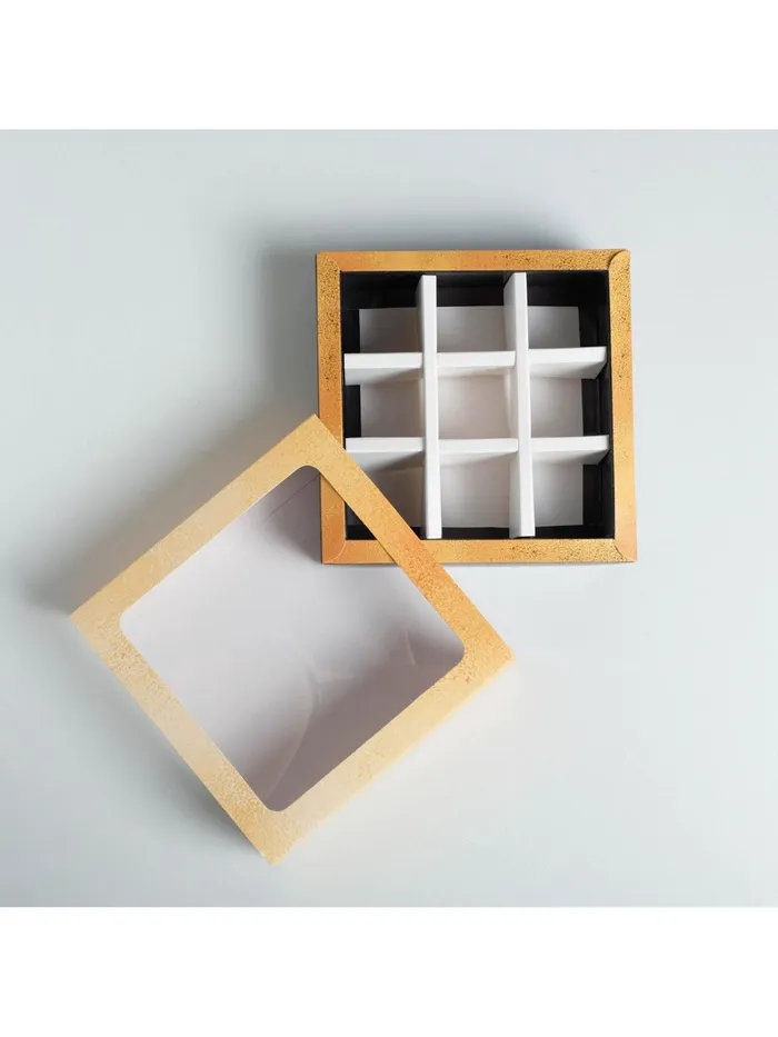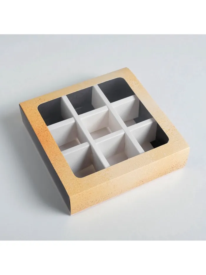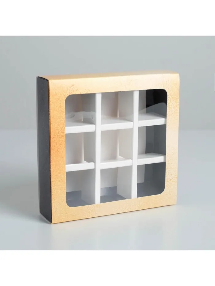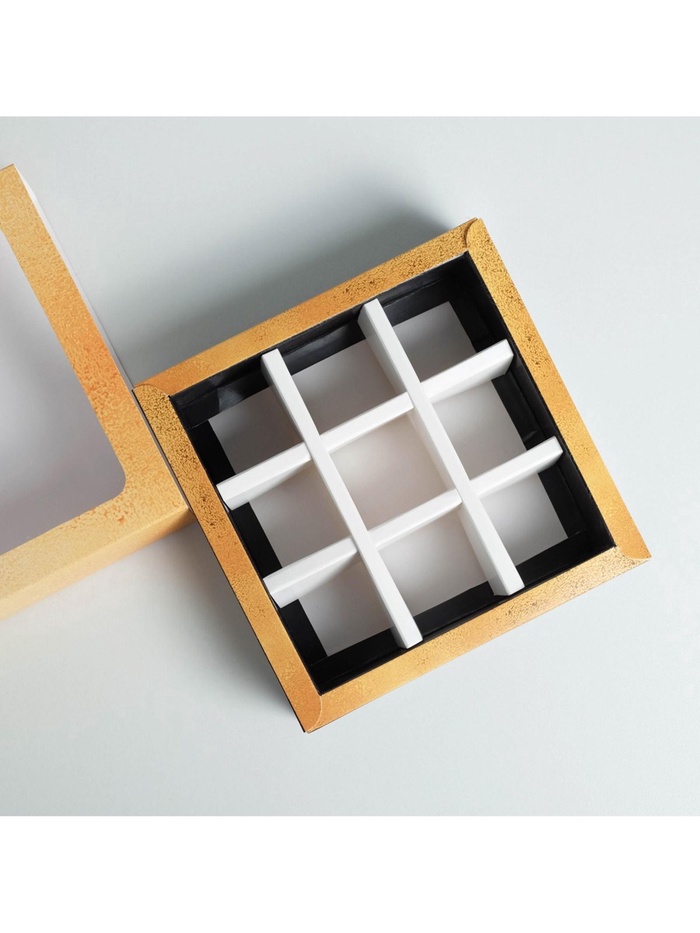Коробка для конфет, кондитерская упаковка, 9 ячеек, Gold 14.5 х 14.5 х 3.5 см — Характеристики