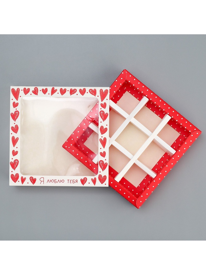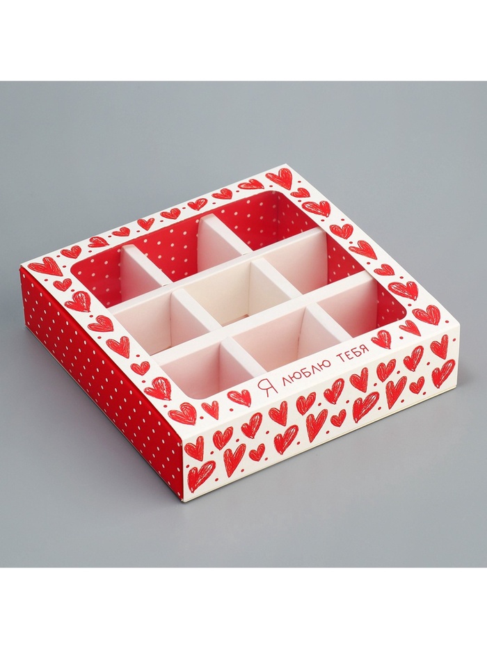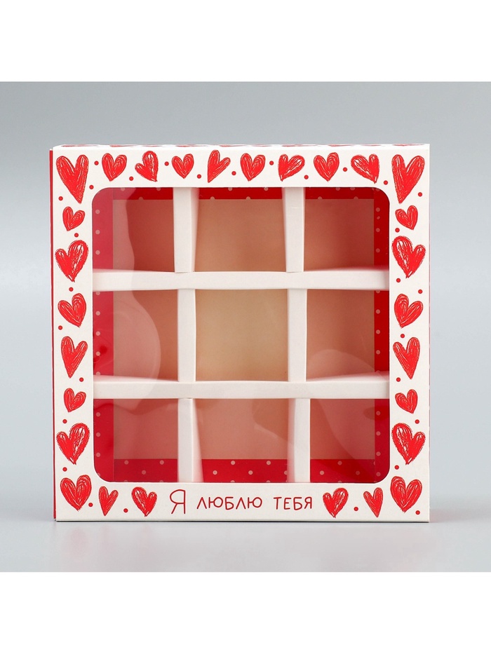 Коробка для конфет, кондитерская упаковка, 9 ячеек, «Я люблю тебя», сердечки, 14.5 х 14.5 х 3.5 см