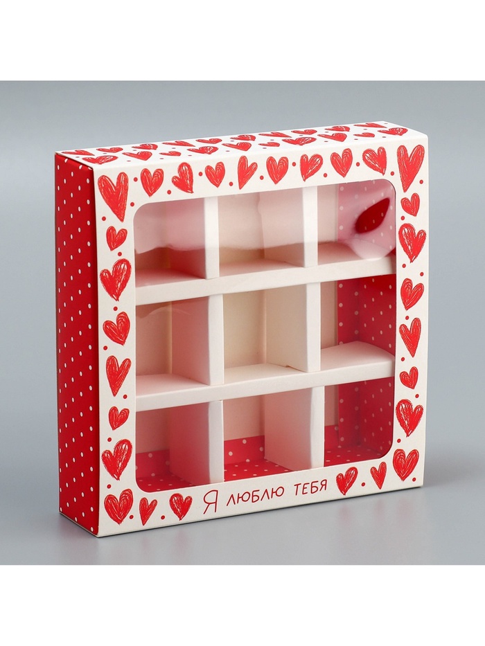 Коробка для конфет, кондитерская упаковка, 9 ячеек, «Я люблю тебя», сердечки, 14.5 х 14.5 х 3.5 см — Характеристики