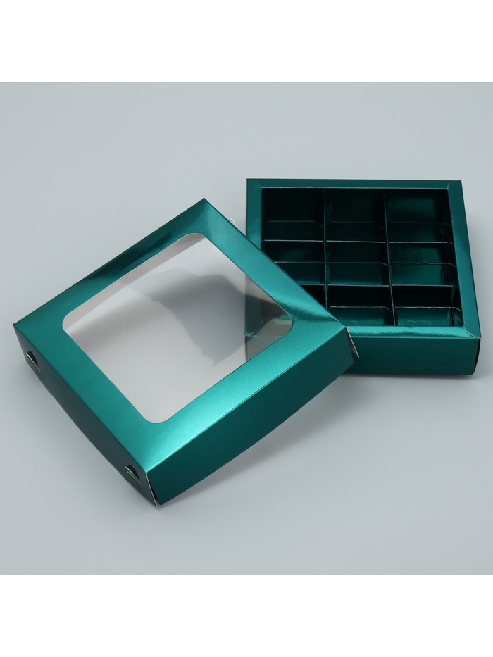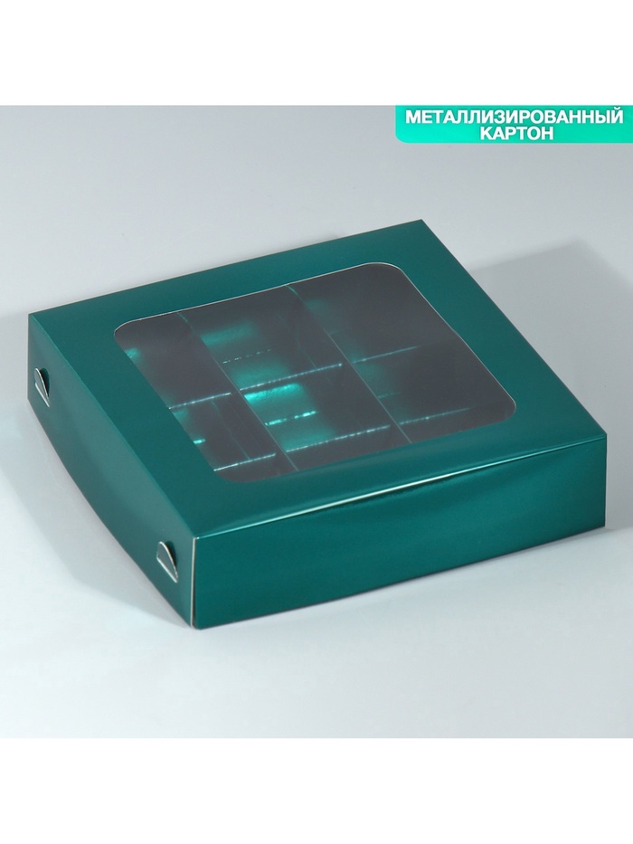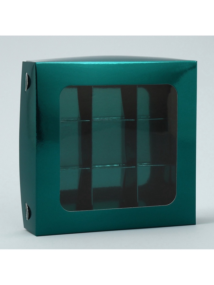 Коробка для конфет, кондитерская упаковка, 9 ячеек, «Изумрудная», 14.7 х 14.7 х 3.5 см — Характеристики