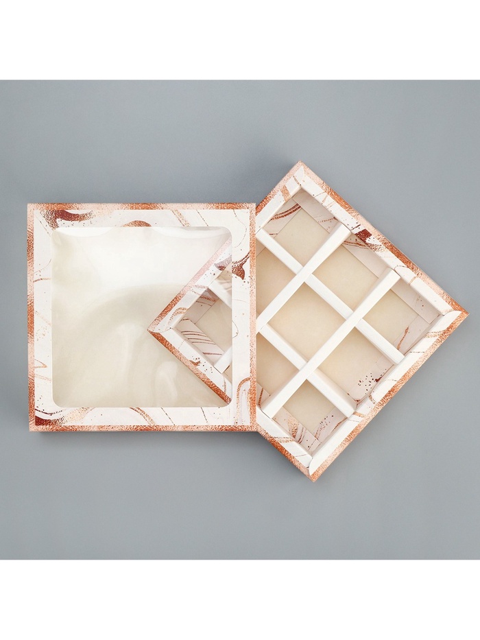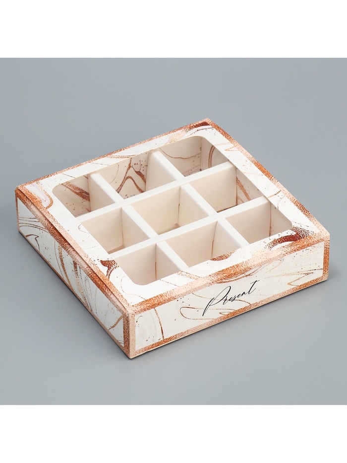 Коробка для конфет, кондитерская упаковка, 9 ячеек, «Мрамор», 14.5 х 14.5 х 3.5 см — Характеристики