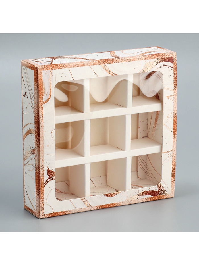 Коробка для конфет, кондитерская упаковка, 9 ячеек, «Мрамор», 14.5 х 14.5 х 3.5 см