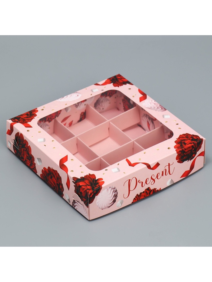 Коробка для конфет, кондитерская упаковка, 9 ячеек, Present, 14.7 х 14.7 х 3.5 см — Характеристики