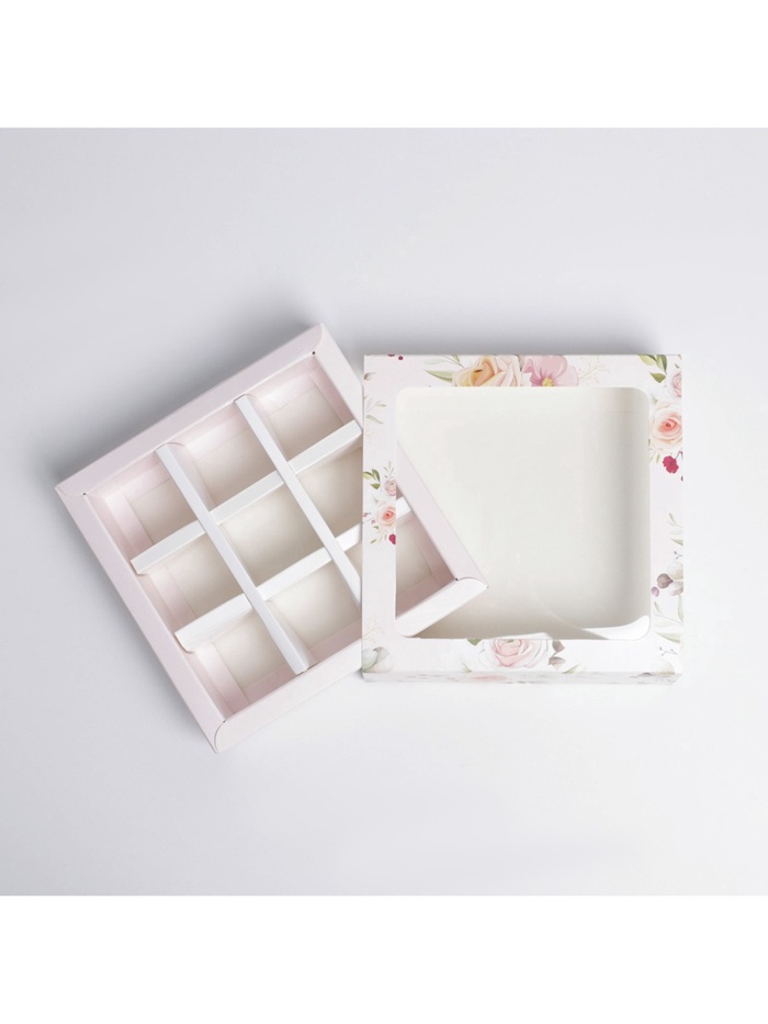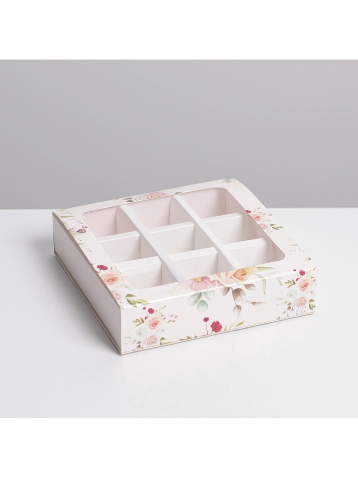 Коробка для конфет, кондитерская упаковка, 9 ячеек, «С 8 Марта» 14.5×14.5×3.5 см — Характеристики