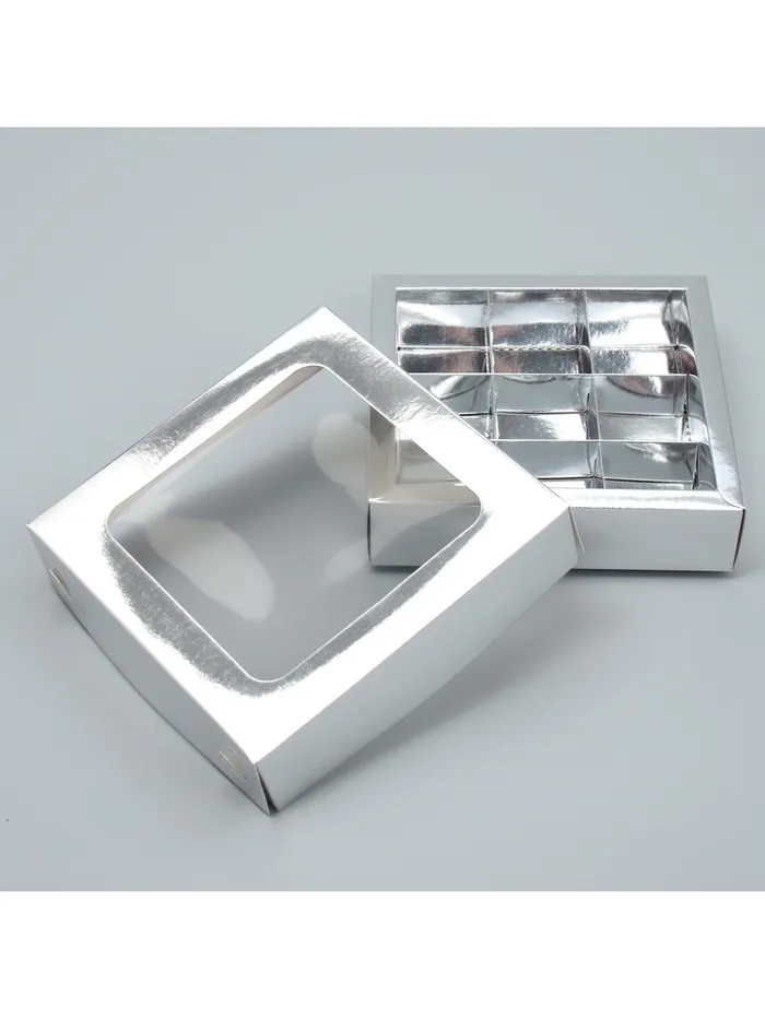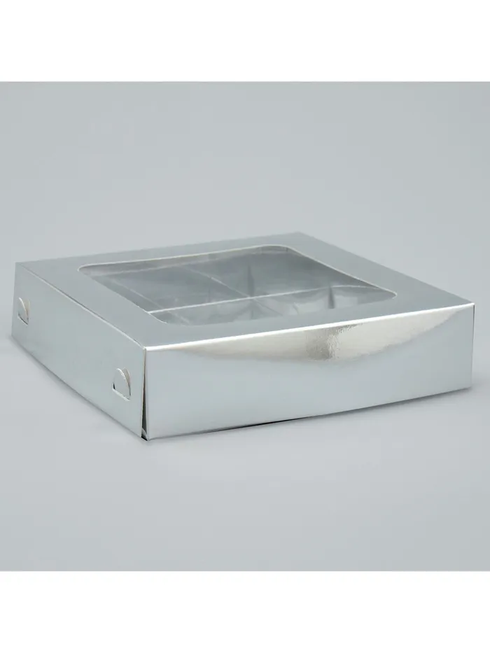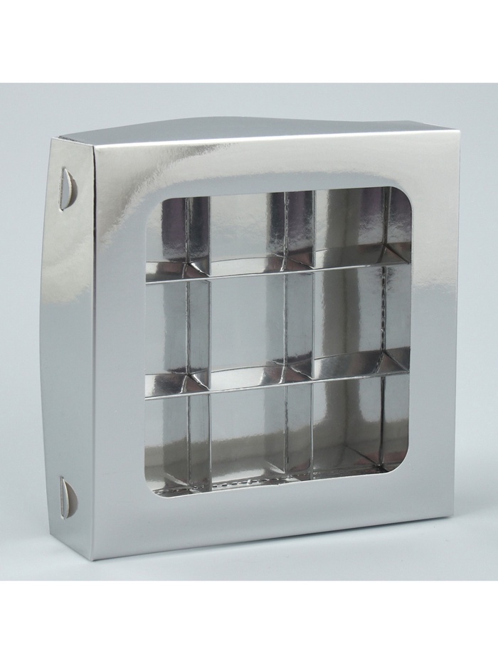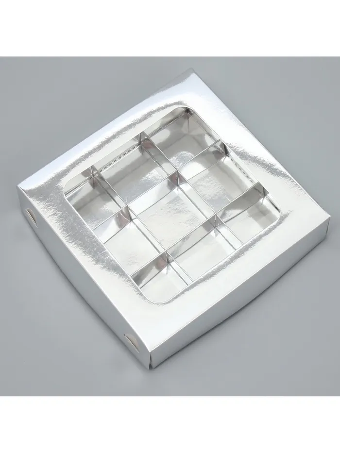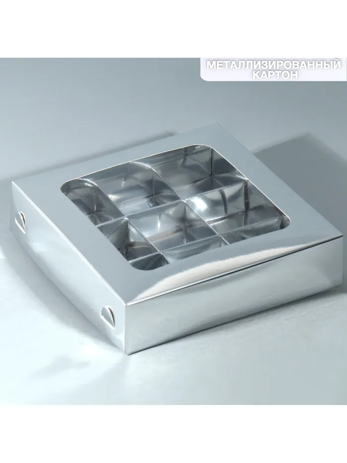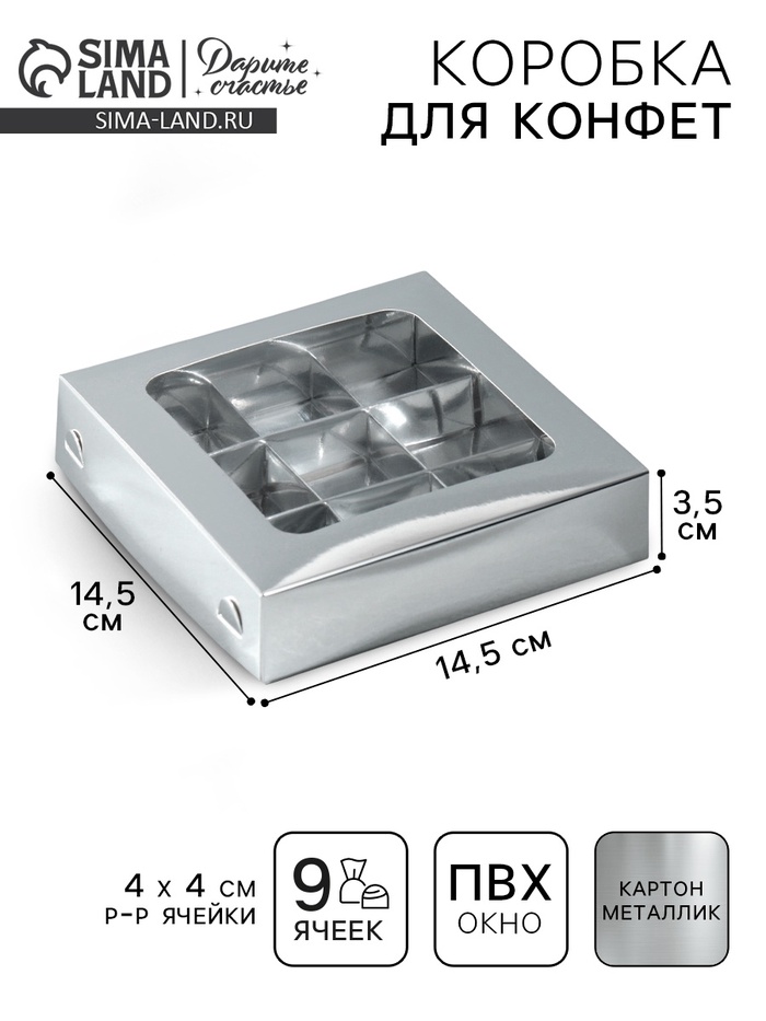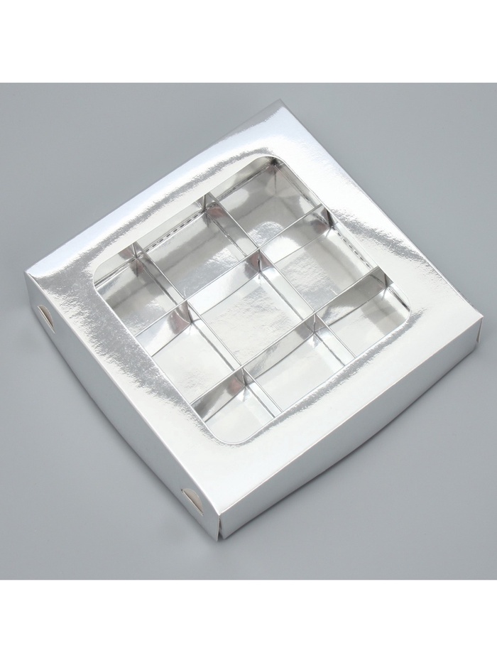 Коробка для конфет, кондитерская упаковка, 9 ячеек, «Серебристая», 14.7 х 14.7 х 3.5 см — Характеристики