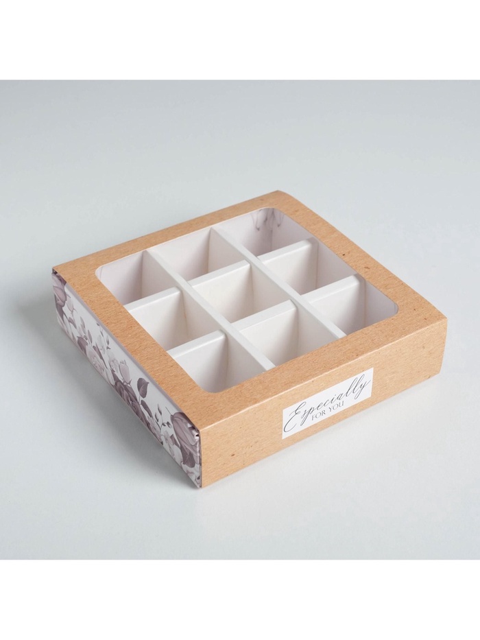 Коробка для конфет, кондитерская упаковка, 9 ячеек, Special for you, 14.5 х 14.5 х 3.5 см — Характеристики