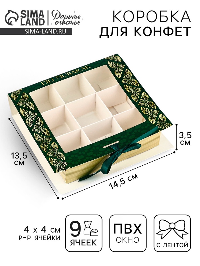 Коробка для конфет на Рамадан, 9 ячеек Eid Mubarak 14.5 х 13.5 х 3.5 см — Характеристики