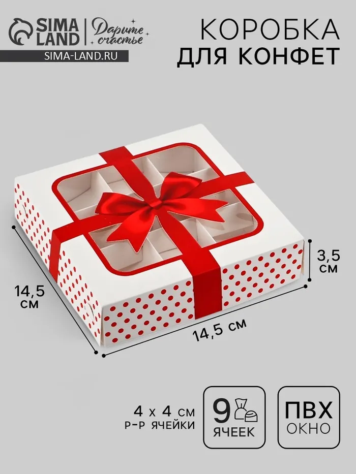 Коробка для конфет «Подарок», 14.7 х 14.7 х 3.5 см — Характеристики