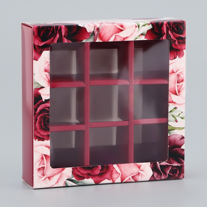 Коробка для конфет с обечайкой 9 шт. «Прекрасных мнгновений», 13.7×13.7×3.5 см — Характеристики