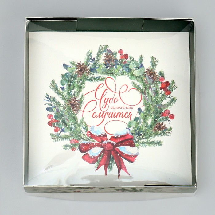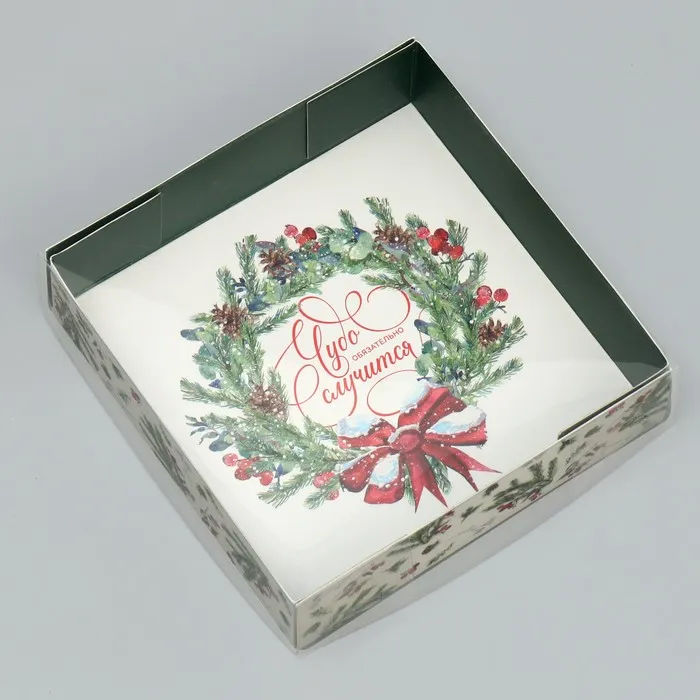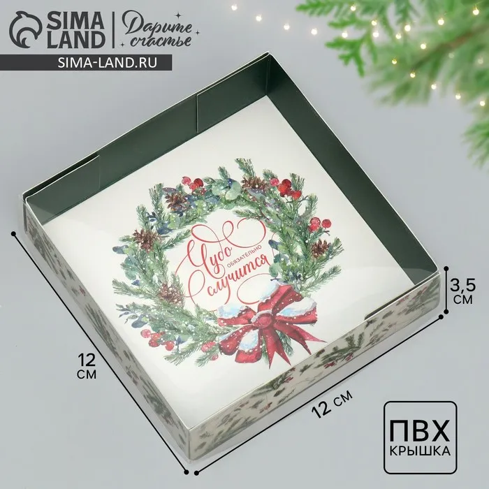Коробка для макарун «Чудо обязательно случится», венок, 12 х 12 х 3.5 см — Характеристики