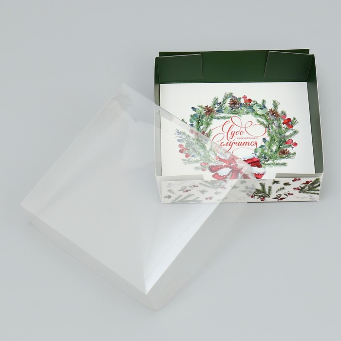 Коробка для кондитерских изделий с пластиковой крышкой «Волшебство вокруг» 11.5 х 11.5 х 6 см