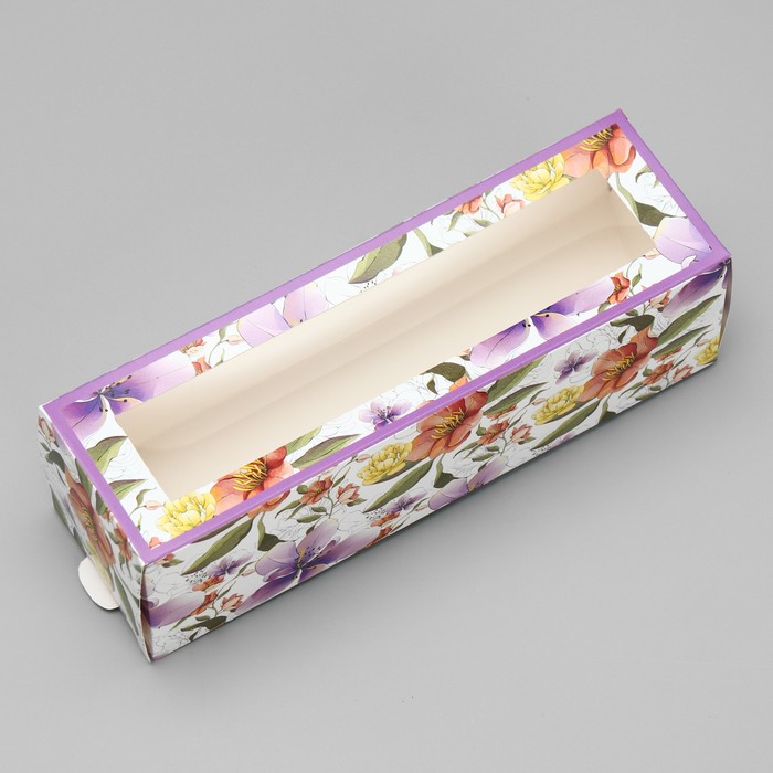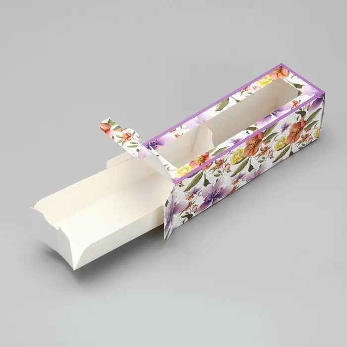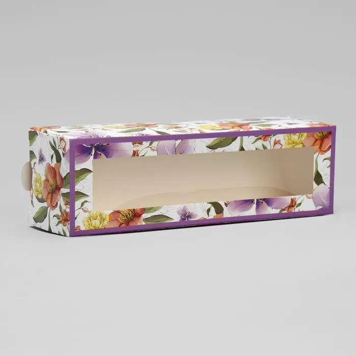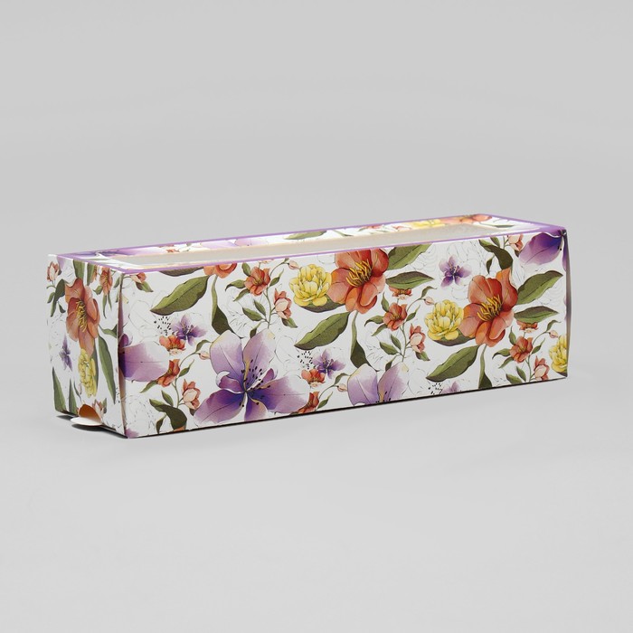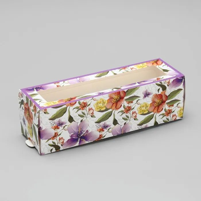 Коробка для макарун, кондитерская упаковка «Ботаника цветы сиреневые» 18 х 5.5 х 5.5 см — Характеристики