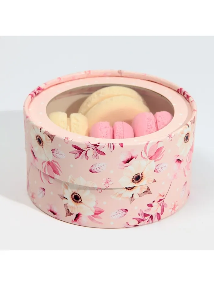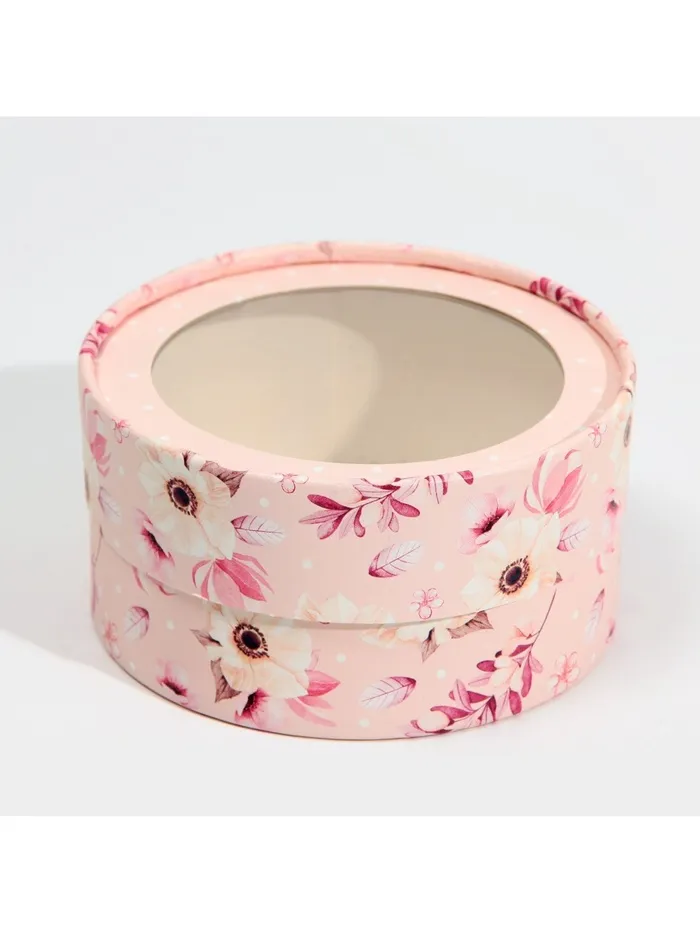 Коробка для макарун, кондитерская упаковка тубус с окном, «Розовые цветы» 12 х 12 х 5 см — Характеристики