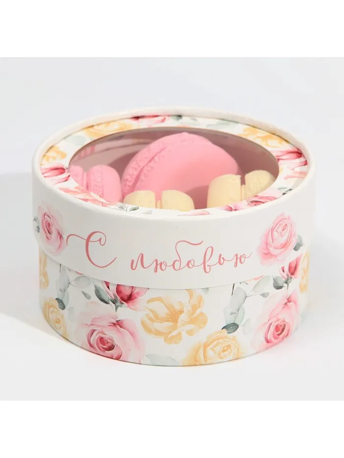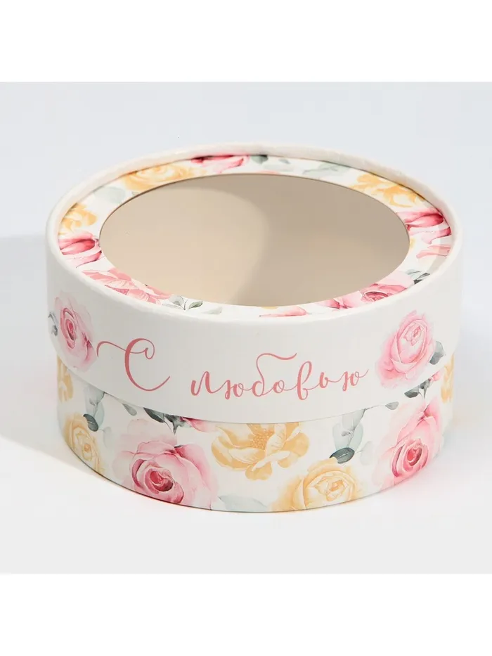 Коробка для макарун, кондитерская упаковка тубус с окном, «С любовью» 12 х 12 х 5 см — Характеристики