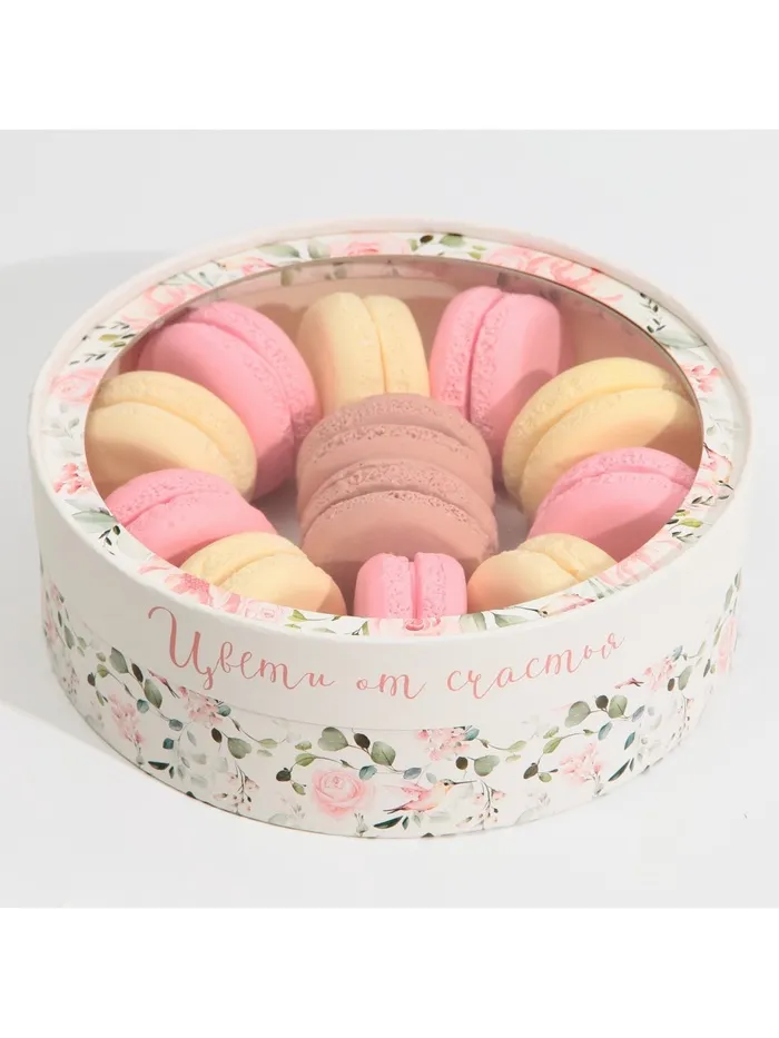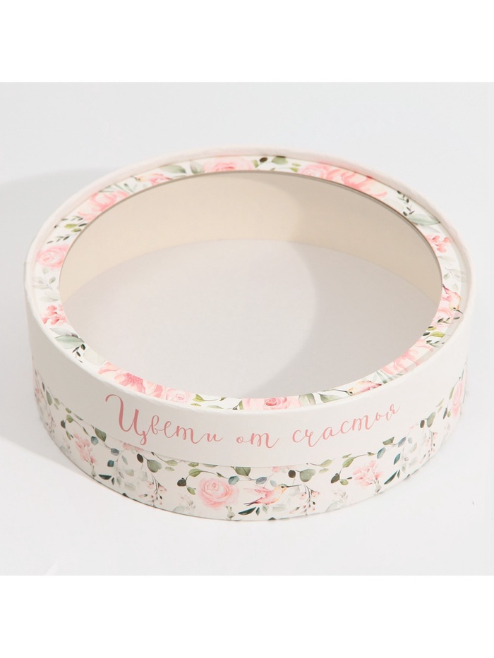 Коробка для макарун, кондитерская упаковка тубус с окном, «Цвети от счастья» 20 х 20 х 5 см — Характеристики
