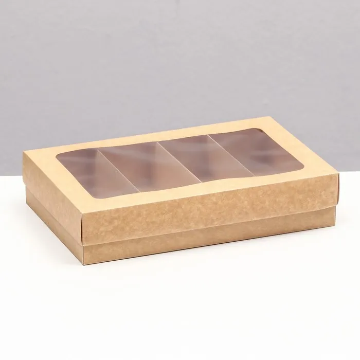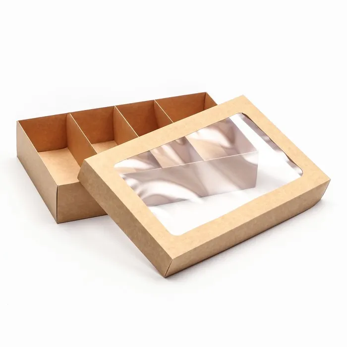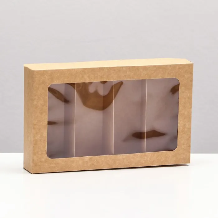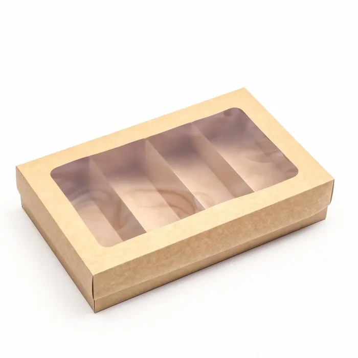 - Плотный крафтовый картон 250 г/м²: Сохраняет форму и защищает содержимое. Натуральный бежевый цвет подчеркивает аппетитность десертов.