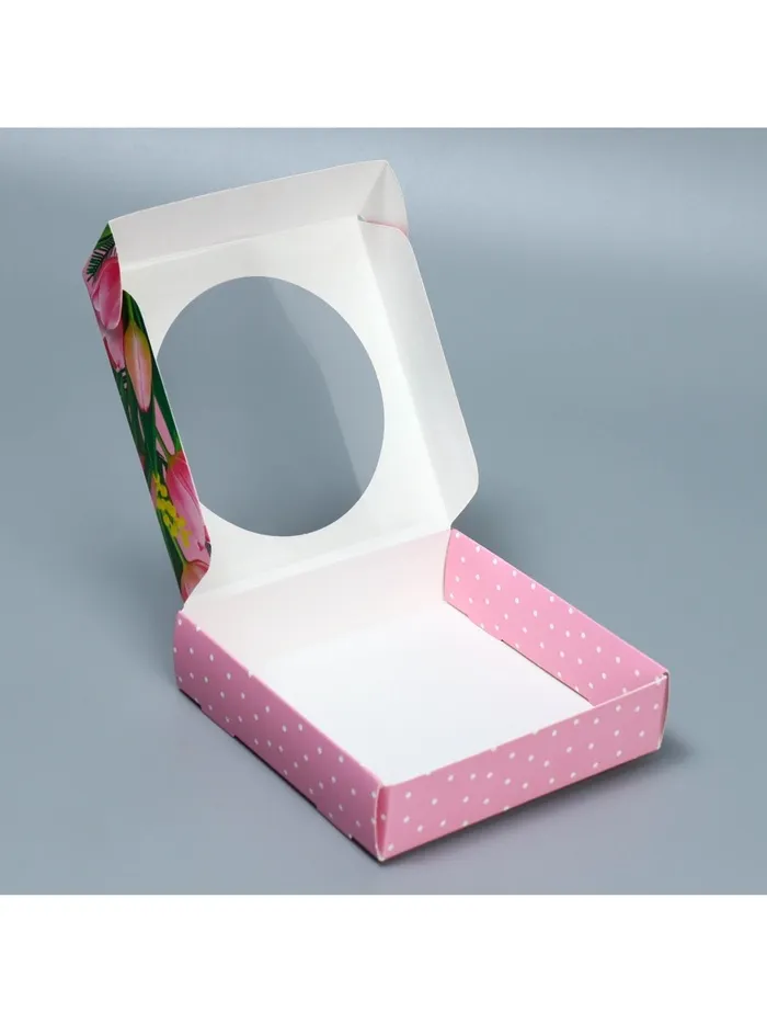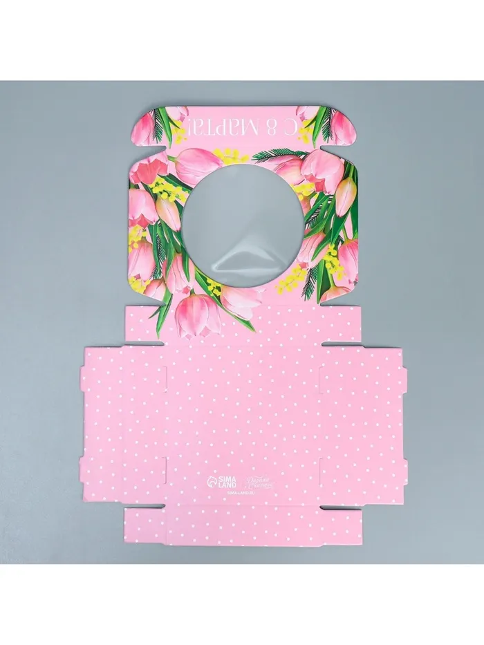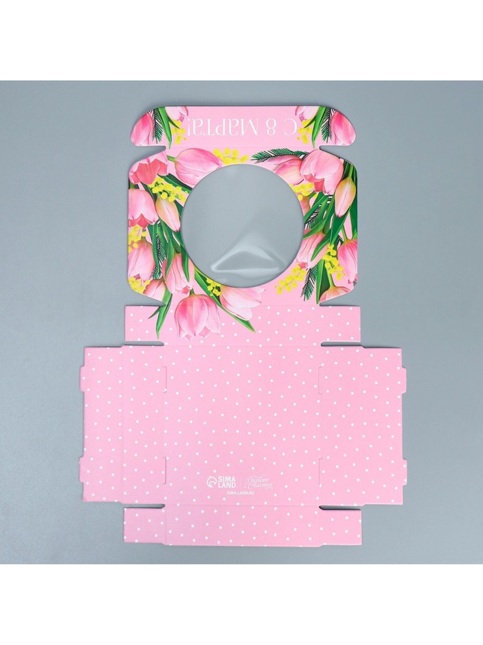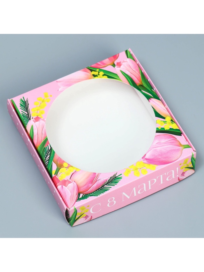 Коробка для макарун с низкими бортами, кондитерская упаковка «8 марта», 11 х 11 х 3 см — Характеристики