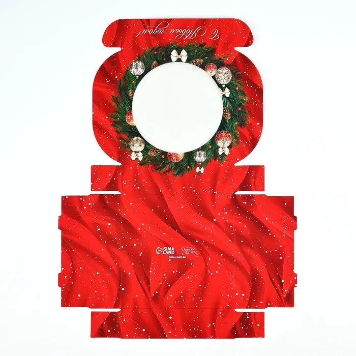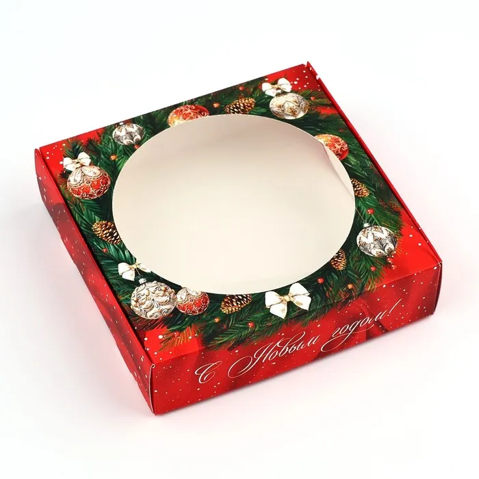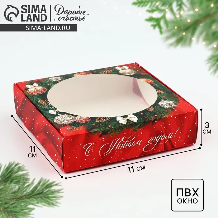 Коробка для макарун с низкими бортами «Новогодняя роскошь», венок, 11х 11х 3 см — Характеристики