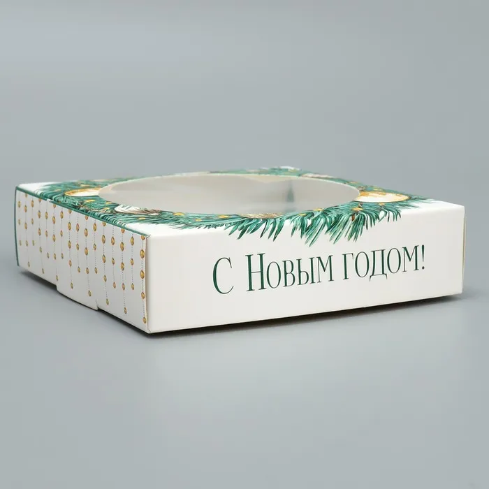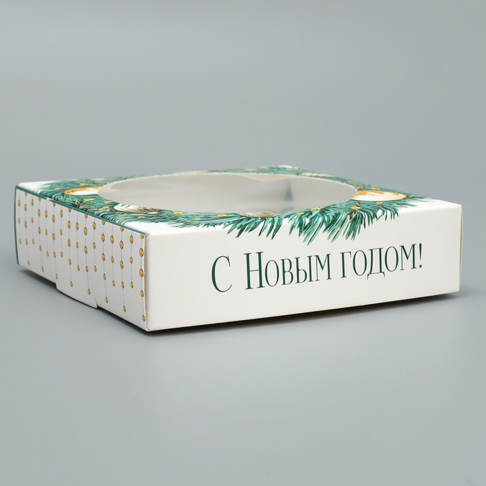 Коробка для макарун с низкими бортами «С Новым годом!», 11×11×3 см
