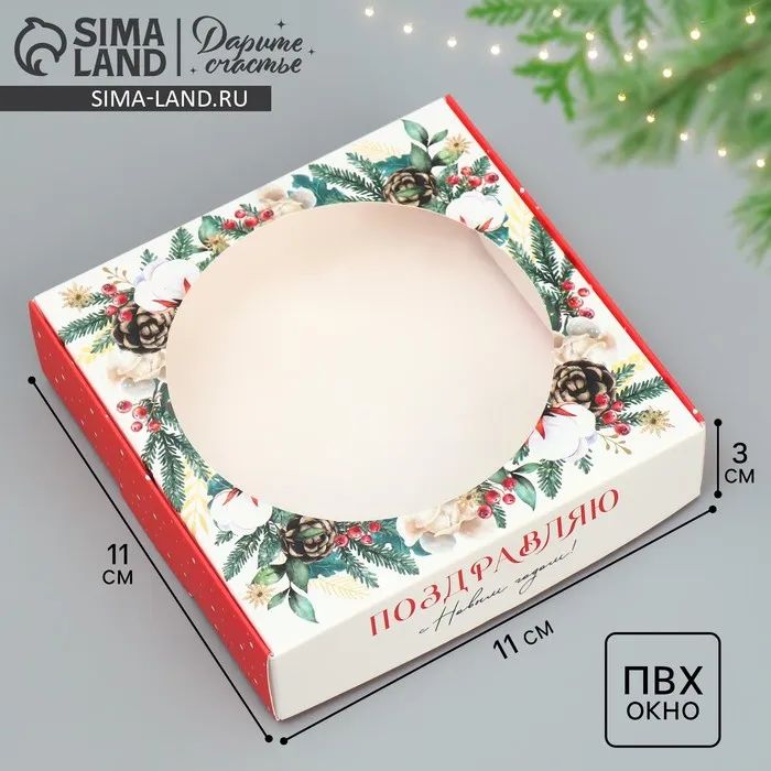 Коробка для кондитерских изделий с пластиковой крышкой «Волшебство вокруг» 11.5 х 11.5 х 6 см