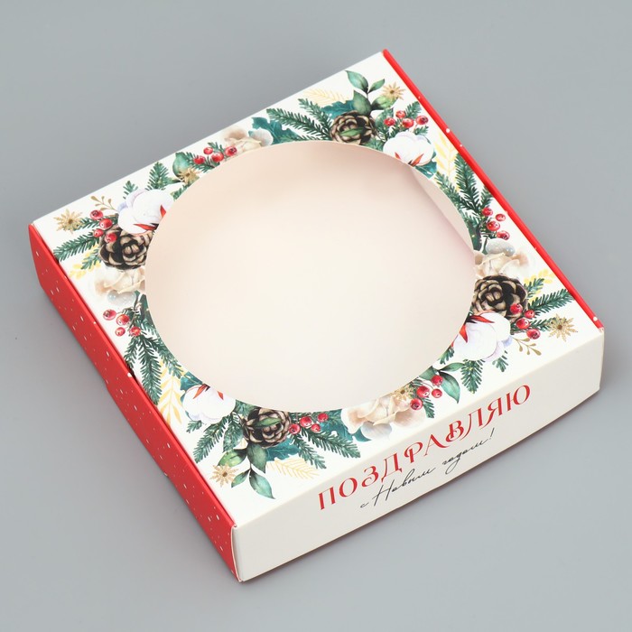 Коробка для кондитерских изделий с пластиковой крышкой «Тебе на радость», 11.5 х 11.5 х 6 см