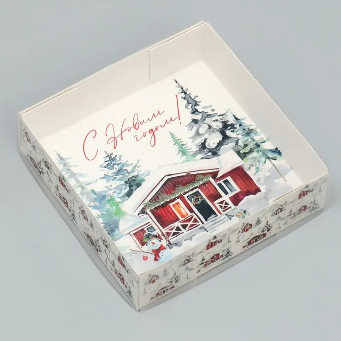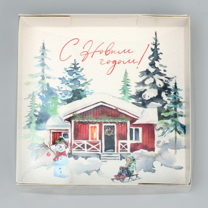 Коробка для макарун «С Новым годом!», акварельный рисунок, 12 х 12 х 3.5 см — Характеристики