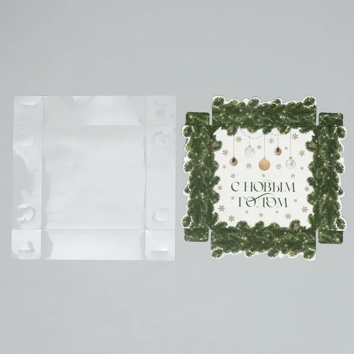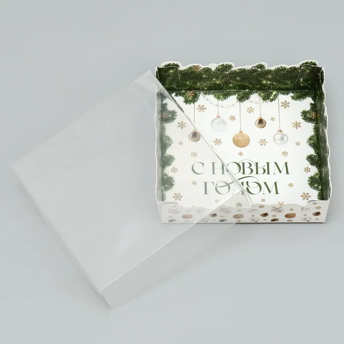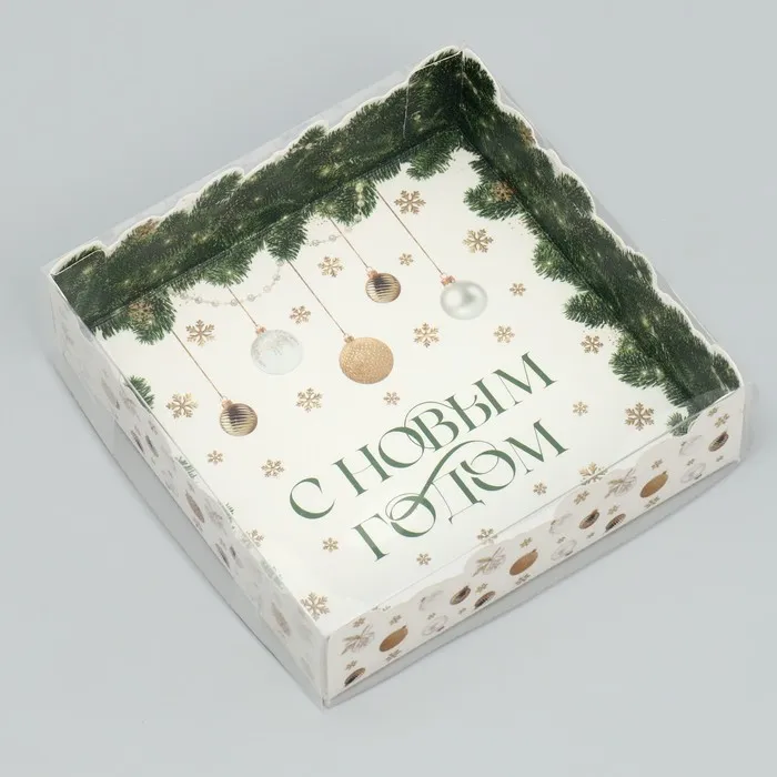 Коробка для макарун «С Новым годом», веточки, 12 х 12 х 3.5 см — Характеристики