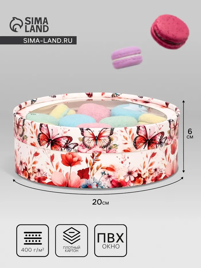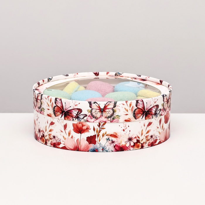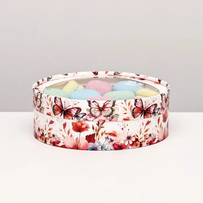 В коробке Тубус с окном ваши макаруны останутся свежими и мягкими, защищая их от воздействия воздуха и сохраняя их аромат и текстуру. Прочное пластиковое окно обеспечивает надежную защиту от пыли и грязи, сохраняя внешний вид макарун на высшем уровне.